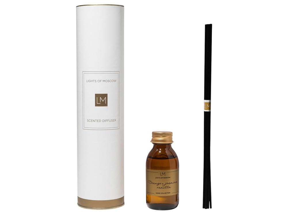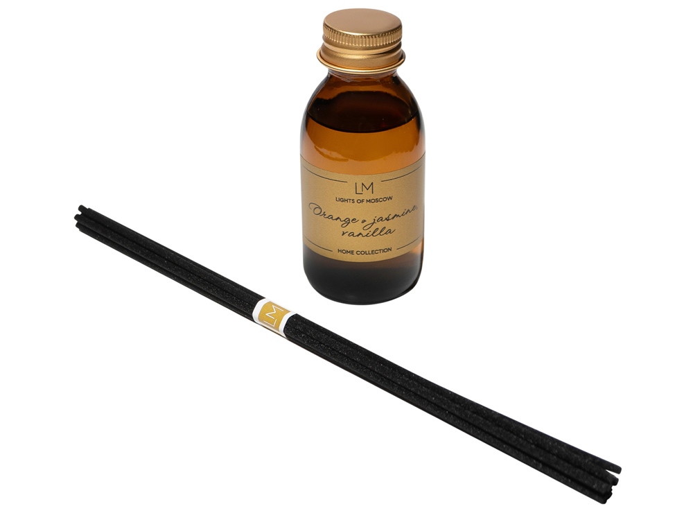 Диффузоры - это простое, изящное и долговременное решение, как наполнить пространство приятным ароматом. Для аромадиффузоров Lights of Moscow используем премиальные ароматизаторы из Европы и США, экологичную базу, фибровые палочки и качественную тару. Погрузитесь в чарующий мир ароматов, где солнечные апельсины переплетаются с изысканным жасмином и сливочной ванилью. Этот уникальный букет превратит Ваше пространство в благоухающий оазис, наполненный теплом и уютом. Верхние ноты: апельсин Средние ноты: жасмин Базовые ноты: ваниль Комплектность: - Подарочный брендированный тубус - 1 шт. - Колба янтарная стеклянная с жидкостью - 1 шт. - Фибровые палочки, запечатанные фтрменной наклейкой LM - 7 шт. - Инструкция - 1 шт. - Открытка - 1 шт. - Упаковочная бумага - 1 шт. Условия хранения: — Свечи, аромасаше, аромадиффузоры, SPA-наборы следует хранить при температуре +18…+24 °C, вдали от источников тепла, сквозняков и прямых солнечных лучей. — Рекомендуемая влажность — не более 50%. — Избегайте длительного воздействия яркого света.
