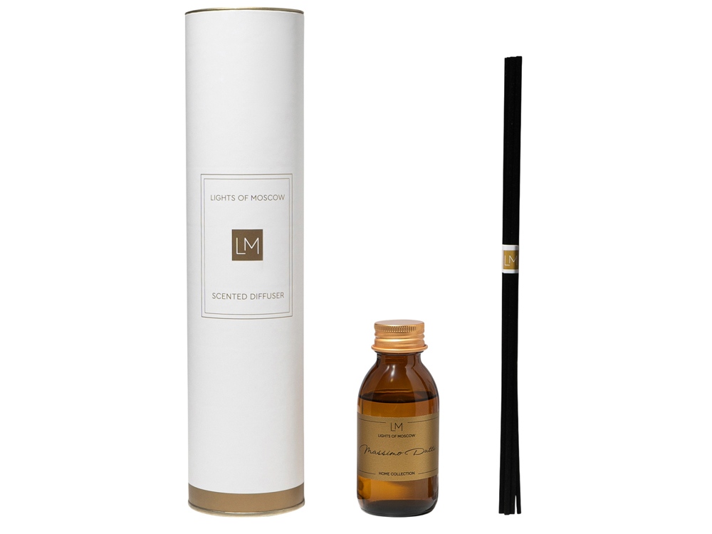 Диффузоры - это простое, изящное и долговременное решение, как наполнить пространство приятным ароматом. Для аромадиффузоров Lights of Moscow используем премиальные ароматизаторы из Европы и США, экологичную базу, фибровые палочки и качественную тару. Massimo Dutti - испанский бренд, имеющий сотни бутиков одежды и аксессуаров по всему миру. Фирменный аромат является неотъемлемой частью дизайна: не важно, где Вы находитесь, в Москве или Венеции, бутик Massimo Dutti сложно перепутать, уже рядом со входом ощущается богатый аромат мускуса и сандала. Теперь Вы можете создать в своем пространстве атмосферу исключительной роскоши. Аромат MD можно охарактеризовать как смолистый, дымный, удовый. Верхние ноты: гелиотроп, сандал, жасмин Средние ноты: боярышник, ваниль Базовые ноты: корица, мускус, амбра Комплектность: - Подарочный брендированный тубус - 1 шт. - Колба янтарная стеклянная с жидкостью - 1 шт. - Фибровые палочки, запечатанные фтрменной наклейкой LM - 7 шт. - Инструкция - 1 шт. - Открытка - 1 шт. - Упаковочная бумага - 1 шт. Условия хранения: — Свечи, аромасаше, аромадиффузоры, SPA-наборы следует хранить при температуре +18…+24 °C, вдали от источников тепла, сквозняков и прямых солнечных лучей. — Рекомендуемая влажность — не более 50%. — Избегайте длительного воздействия яркого света.