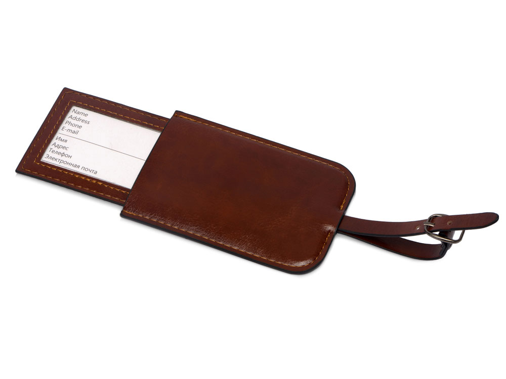 Багажная бирка из PU Fabrizio, коричневый купить оптом и в розницу с нанесением логотипа в Челябинске