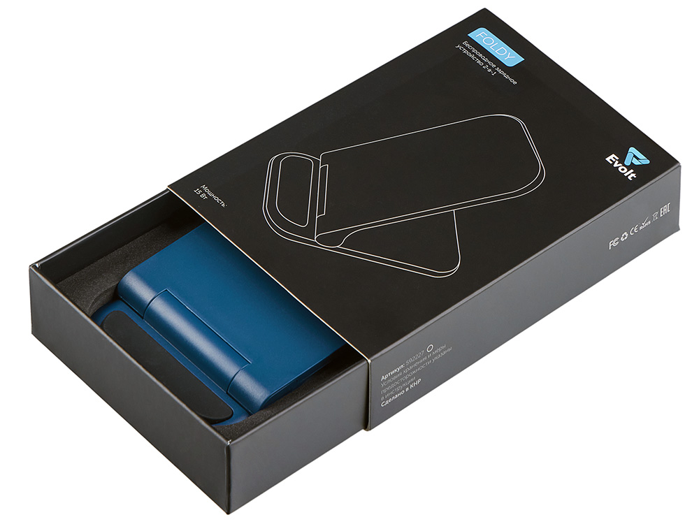 Беспроводное зарядное устройство Foldy, 15 Вт, темно-синий купить оптом и в розницу с нанесением логотипа в Челябинске