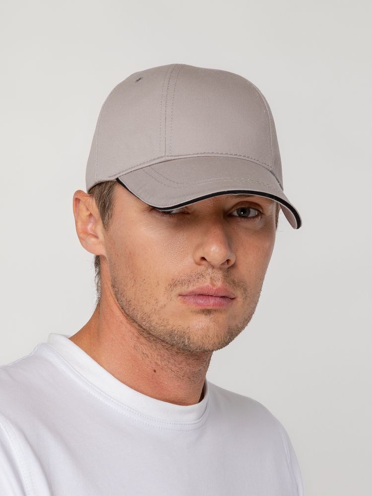 Бейсболка Canopy, серая с черным кантом купить оптом и в розницу с нанесением логотипа в Челябинске