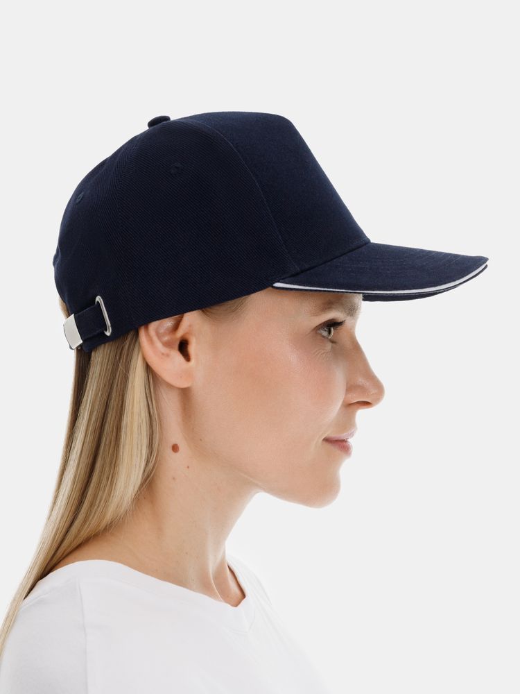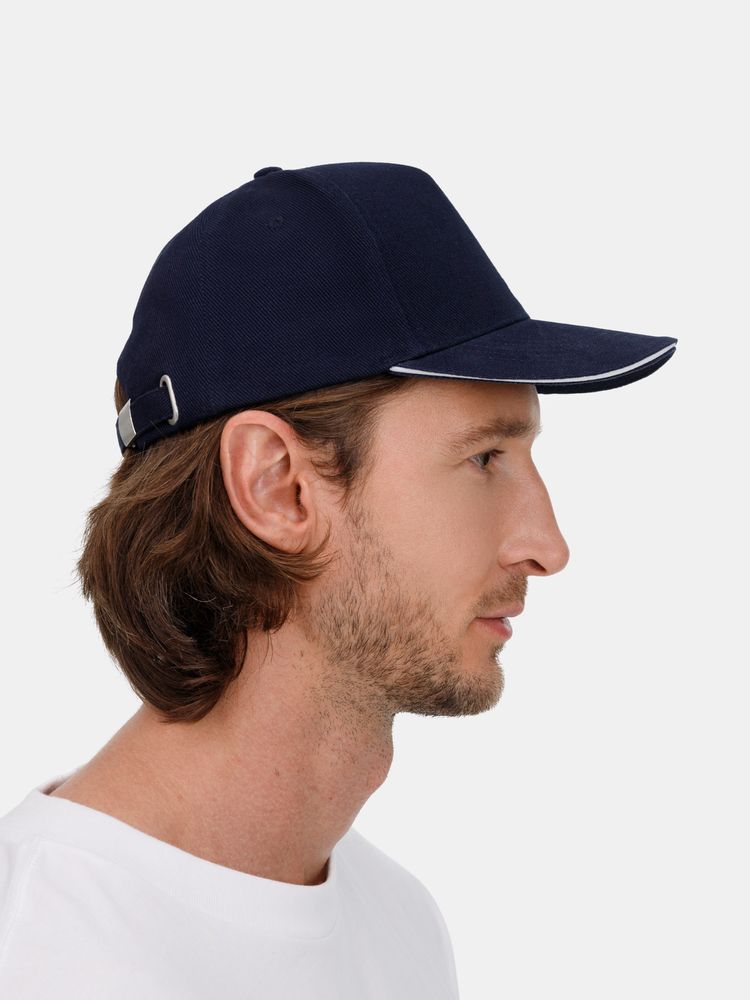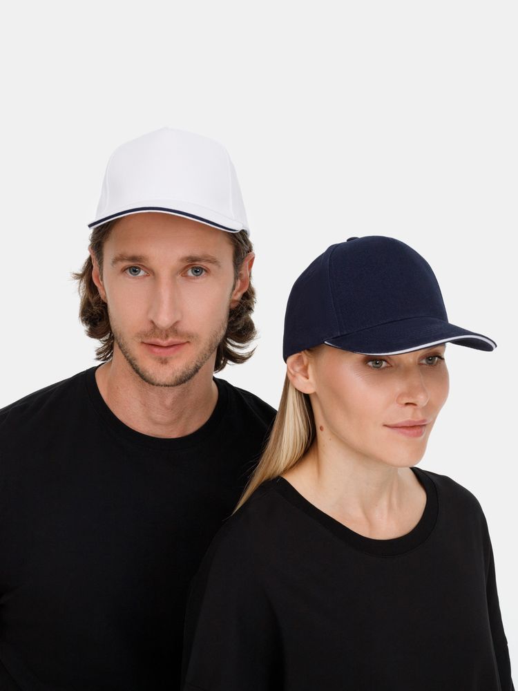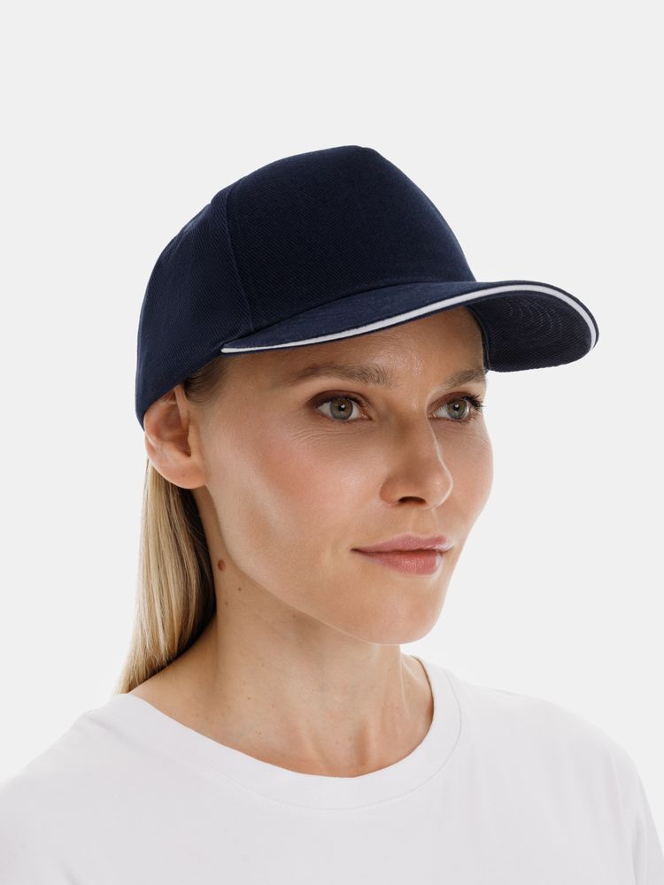 Бейсболка Classic 2.0, темно-синяя с белым кантом купить оптом и в розницу с нанесением логотипа в Челябинске