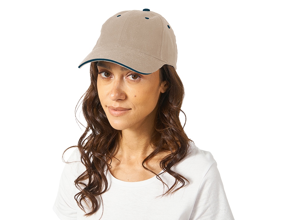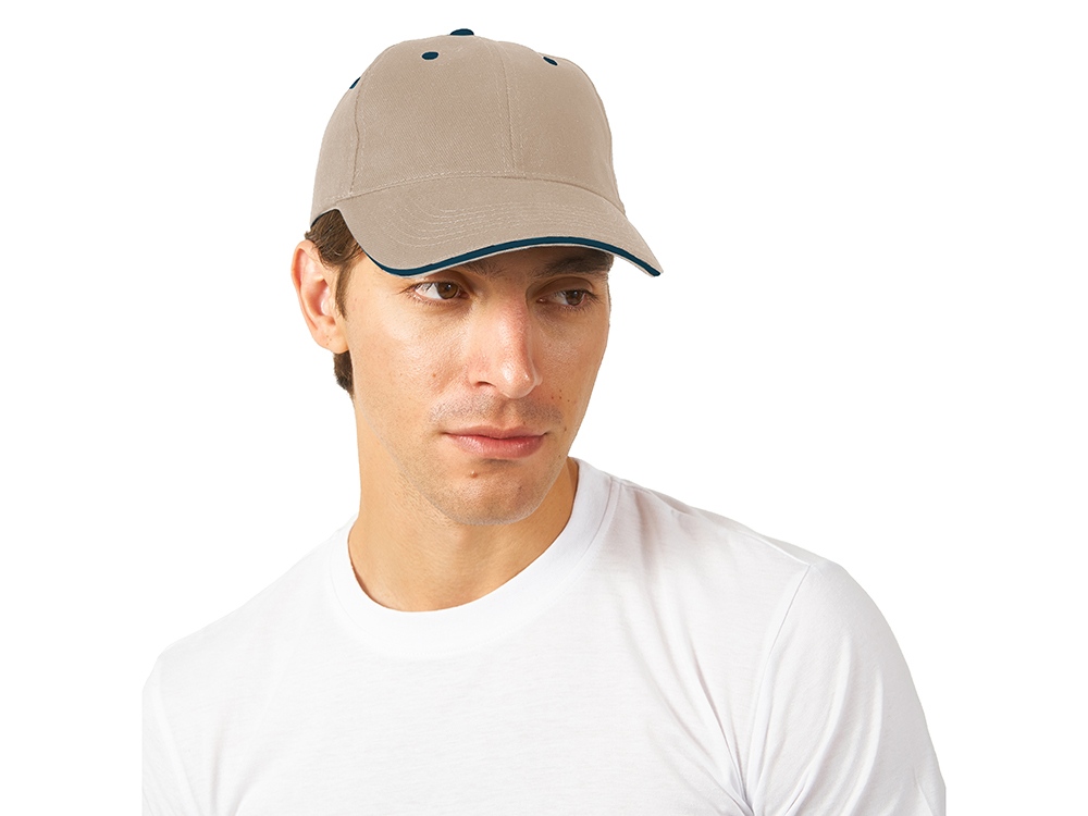 Стильная 6-панельная промо-бейсболка с контрастными деталями. Отличный выбор для яркого и запоминающегося брендинга. - Классическая бейсболка сшита из 6 панелей. - Яркие акценты – контрастная верхняя пуговичка, а также вышитые люверсы – стильная деталь, привлекающая внимание и усиливающая узнаваемость бренда. - Эффективная вентиляция: люверсы обеспечивают комфорт при носке - Премиальный вид козырька конструкции сэндвич с декоративным контрастным кантом по краю, не только эстетично, но и повышает жесткость и долговечность козырька. - Удобная посадка - регулируемая застежка на липучке (велкро) гарантирует идеальное прилегание на любую голову.