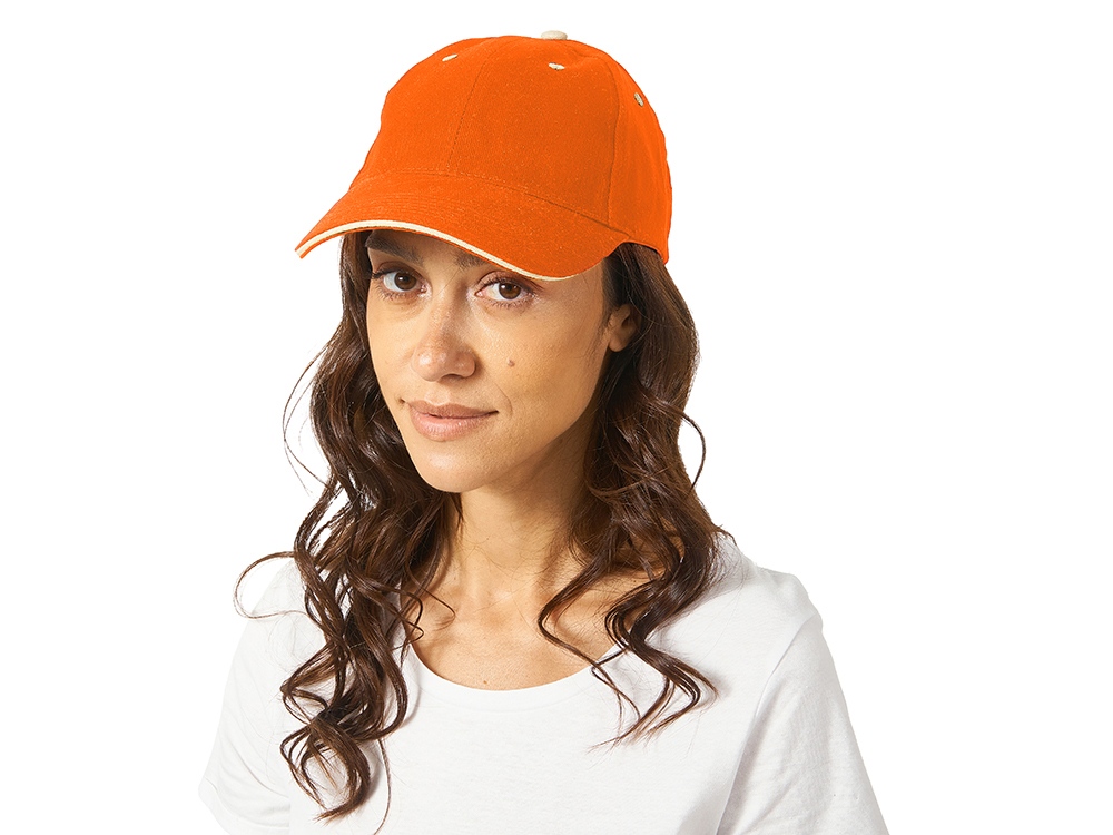 Стильная 6-панельная промо-бейсболка с контрастными деталями. Отличный выбор для яркого и запоминающегося брендинга. - Классическая бейсболка сшита из 6 панелей. - Яркие акценты – контрастная верхняя пуговичка, а также вышитые люверсы – стильная деталь, привлекающая внимание и усиливающая узнаваемость бренда. - Эффективная вентиляция: люверсы обеспечивают комфорт при носке - Премиальный вид козырька конструкции сэндвич с декоративным контрастным кантом по краю, не только эстетично, но и повышает жесткость и долговечность козырька. - Удобная посадка - регулируемая застежка на липучке (велкро) гарантирует идеальное прилегание на любую голову.