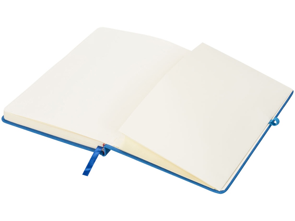 Блокнот Rivista среднего размера. Блокнот Rivista отличается стильным современным дизайном с высококачественной обложкой, идеально подходящей для нанесения логотипа и информации вашей компании. Предлагаются современные цвета. Также предусмотрена эластичная застежка, держатель для ручки, лента-закладка и внутренний кармашек на задней стороне обложки. Содержит 128 листов линованной бумаги (70 г/м²) кремового цвета. ПУ.