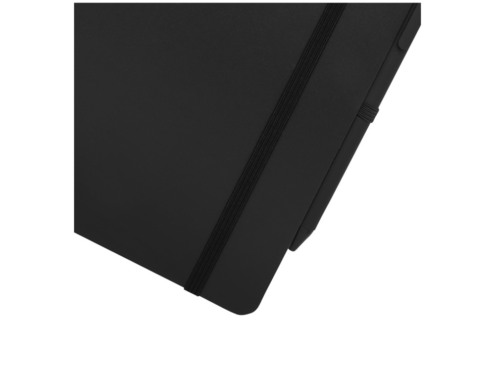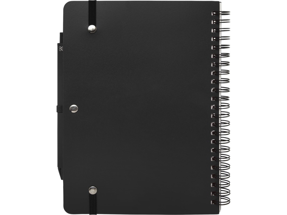 Блокнот Thalaasa формата A5 в твердой обложке изготовлен из переработанного океанического пластика и содержит 80 линованных листов кремовой бумаги плотностью 70 г/м². Блокнот имеет закругленные углы, эластичную застежку и петлю для ручки. Шариковая ручка с черными чернилами также изготовлена из переработанного океанического пластика. Длина непрерывной линии: 1000 метров. Размер пера: 1,0 мм.