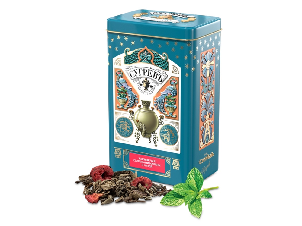 БОЛЬШАЯ БАНКА С РЕЛЬЕФОМ. Зелёный чай с мятой и цельными ягодами малины.500г.