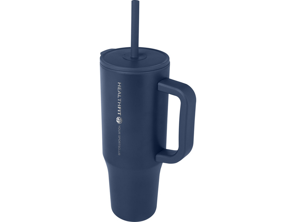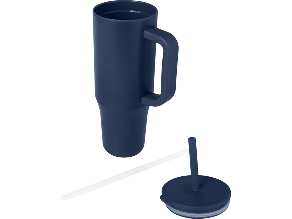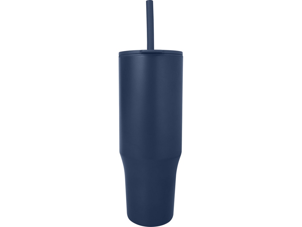 Brady термостакан с силиконовой трубочкой, объемом 900 мл, сертифицированный согласно RCS - Темно - синий купить оптом и в розницу с нанесением логотипа в Челябинске