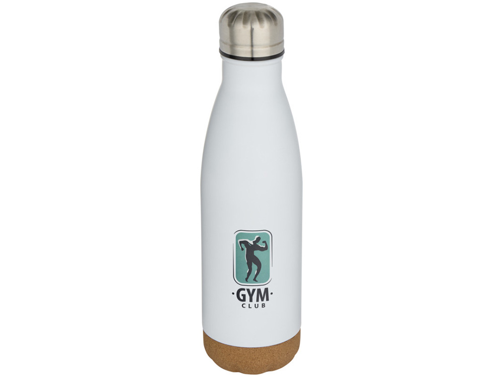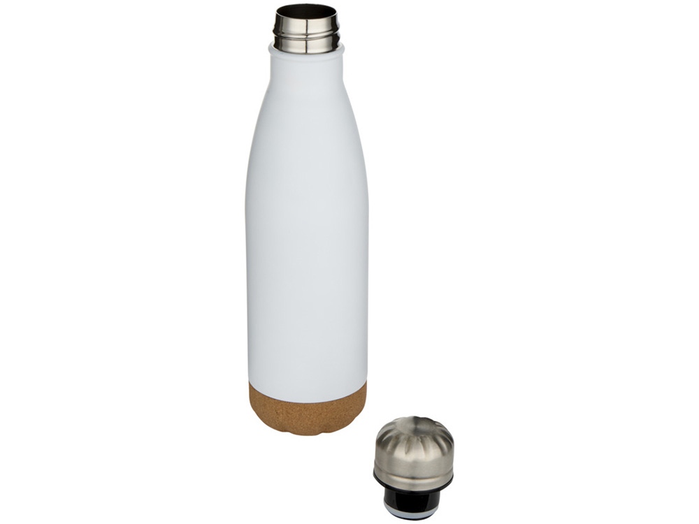 Бутылка для воды из нержавеющей стали с вакуумной изоляцией и пробковыми деталями в нижней части. Двойная изоляция стенок сохраняет напитки горячими или холодными в течение нескольких часов. Поставляется в подарочной коробке из переработанного картона. Объем: 500 мл. 90% нержавеющая сталь, 10% Пробка. упаковка FSC Mix Credit P5.1 CU-COC-877277.