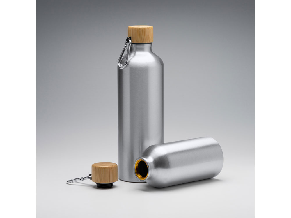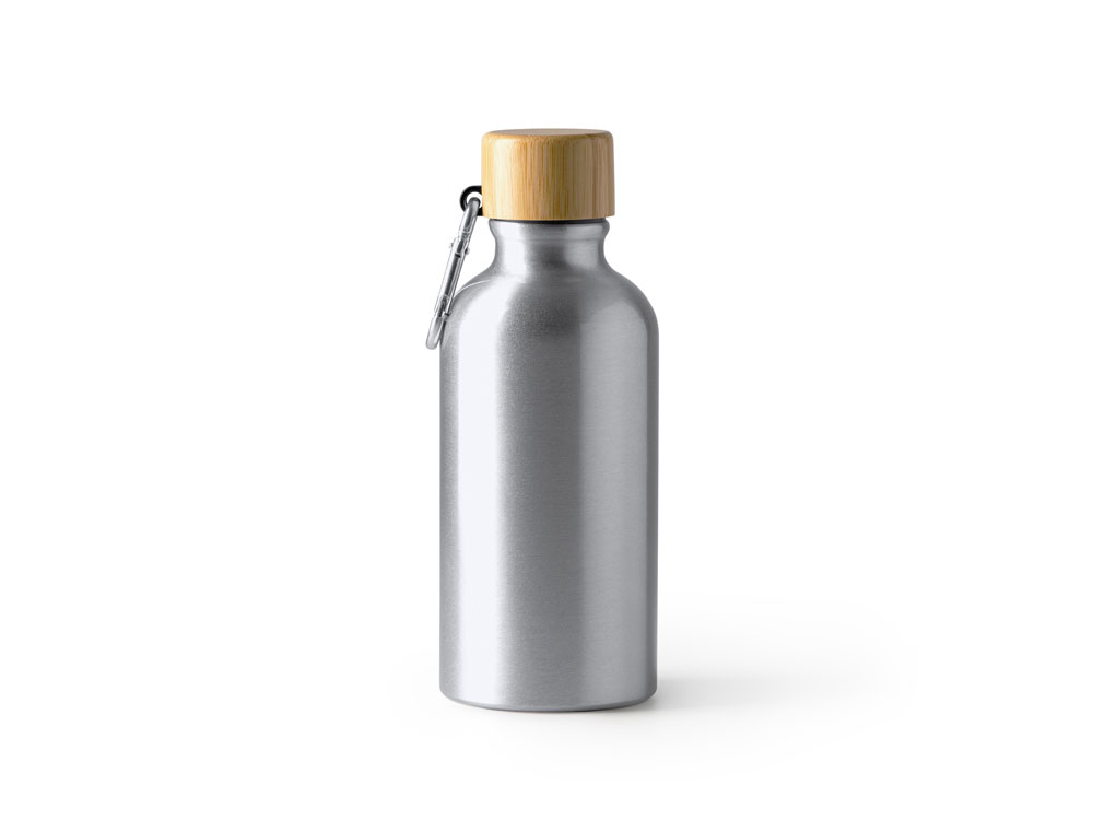 Алюминиевая бутылка с карабином и бамбуковой пробкой. Емкость 400 мл.