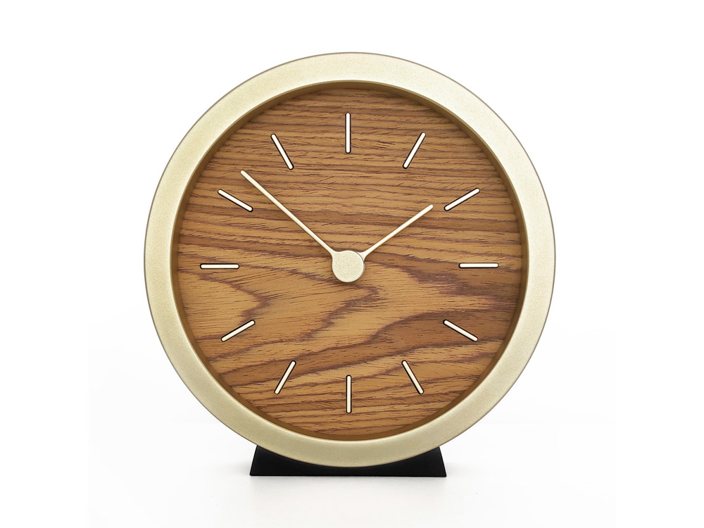 Часы Gracie - это гармоничное сочетание теплого натурального шпона и приглушенного золотистого обрамления. Выбор данной модели часов для оформления интерьера поможет сделать помещение более интересным и харизматичным. Настольные часы коллекции Bronco будут хорошо смотреться как в офисном помещении, добавляя ему тепла и уюта, так и в домашнем кабинете или гостиной, подчеркивая хороший вкус хозяина. Материал корпуса: МДФ Механизм: Кварцевый с плавным тихим ходом