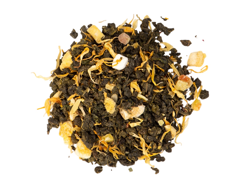 Чай Манговый улун, серия Bouquet Для тех, кто хочет добавить в чаепитие новых красок, придумана серия Bouquet. Каждый купаж чая в серии имеет разнообразные и неожиданные добавки фруктов, ягод или трав. Улун Тегуаньинь собирается из средних листьев, содержащих много кофеина. Он придаст сил и бодрости, в отличие от классического молочного улуна, а папайя и манго добавят солнечных и тёплых впечатлений. - вес чая: 70 гр.; - состав: китайский чай улун Тегуаньинь, кусочки манго сублимированные, кусочки папайи, лепестки календулы, натуральный ароматизатор.; - стеклянная банка сохраняет все ароматы чая.