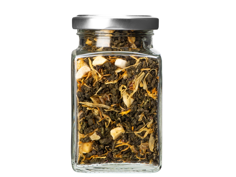 Чай манговый улун, серия Bouquet, стеклянная банка купить оптом и в розницу с нанесением логотипа в Челябинске