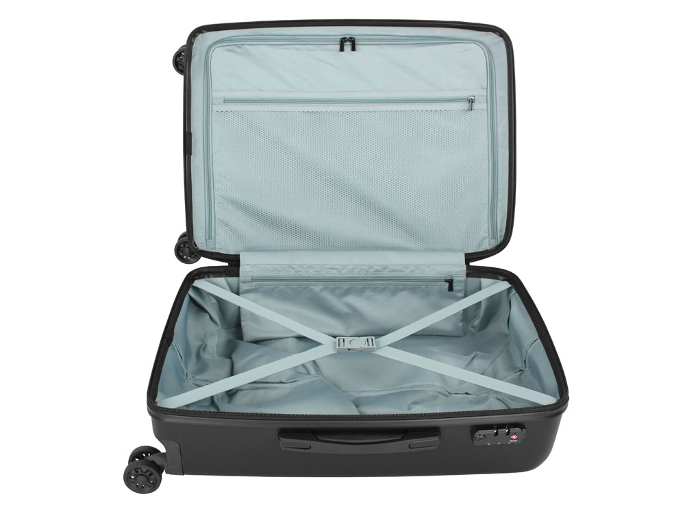 ЧЕМОДАН KALLISTO Серия Kallisto воплощает собой нашу страсть к путешествиям. Тонкие диагональные полосы и стильная поверхность с металлическим оттенком подчёркивают непринужденную привлекательность коллекции, представленной в чёрном цвете. Логотип Bugatti аккуратно встроен в металлический шильдик на корпусе. Четыре двойных резиновых колеса просты в управлении и очень удобны. Они могут вращаться на 360°, обеспечивая лёгкий ход по любой поверхности при сохранении полной манёвренности. Лёгкая выдвижная телескопическая ручка удобно фиксируется в нескольких положениях. Замок TSA с трехзначным кодом надёжно защищает содержимое багажа от несанкционированного доступа, а дополнительная ручка на дне корпуса облегчает загрузку и выгрузку чемодана. Продуманная концепция больших отделений с внутренней перегородкой на молнии позволяет максимально практично использовать внутреннее пространство. СВОЙСТВА Внутренняя организация: основное отделение на молнии с 2 отсеками, сетчатой перегородкой с карманом на молнии, карманом на молнии и 2 фиксирующими ремнями Внешняя организация: телескопическая ручка, кодовый замок TSA, 4 двойных колеса, боковая ручка, ручка на дне Размер: 44,5 x 26 x 63,5 см Объём: 65 л Вес: 3,60 кг Материал: АБС-пластик