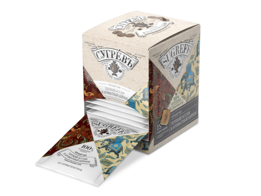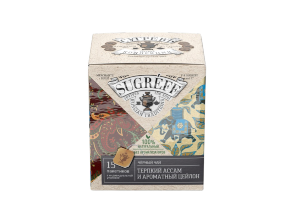 Черный чай Терпкий Ассам и ароматный Цейлон в индивидуальном саше конверте, 15 пакетиков купить оптом и в розницу с нанесением логотипа в Челябинске