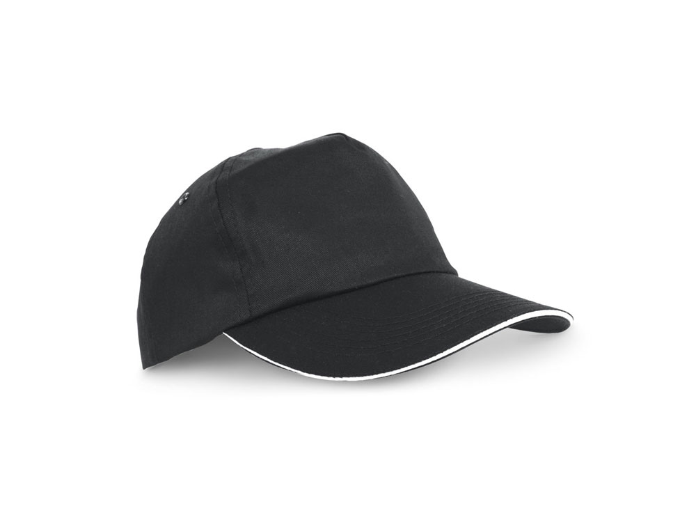 CLAIRE. Бейсболка sandwich, Черный. Бейсболка sandwich из полиэстера на регулируемой застежке-велькро. Вид нанесения, рекомендуемый поставщиком: вышивка, трансфер