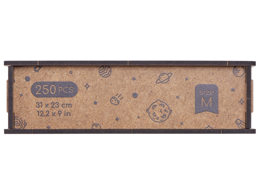 Вечный холод, темнота, нет ничего живого. Великий Космос разве он таков? Безграничная Вселенная прекрасна в тихом безмолвии. Мириады звезд кружатся в космическом танце. Солнечные вихри устремляются вдаль, пронося частички света мимо них. Кометы, астероиды и планеты складываются в галактики, а потом и в туманности. Невероятная Сила создала далекие миры. Среди всего этого великолепия есть маленькая жемчужина. Прекрасная своим видом, теплая, обласканная лучами Солнца, маленькая планета Земля. Она уникальна в нашей Солнечной системе. Много лет назад зародилась жизнь на планете, а многие процессы до сих пор будоражат умы ученых. Но возможно где-то, среди стольких звезд в океане Вселенной, найдутся еще живые жемчужины — планеты. Фигурный пазл от Unidragon из новой серии Космос, поразит своими красками. Мерцающие звезды распространяют лучи света вокруг себя. Длинные хвосты комет оставляют яркие шлейфы за собой. Детали пазла удивительным образом складываются в планеты и солнечные вихри. Лучи яркого солнца озаряют настоящее космическое приключение. Картина не имеет ровных краев, что усложняет сборку. - Количество деталей: 250шт. - Размер собранного пазла: 31х23см - Длительность сборки: от 4 часов - Детали уникальной формы - Прочные и долговечные детали с безупречным сцеплением - Премиальная подарочная коробка из дерева, которую можно персонализировать