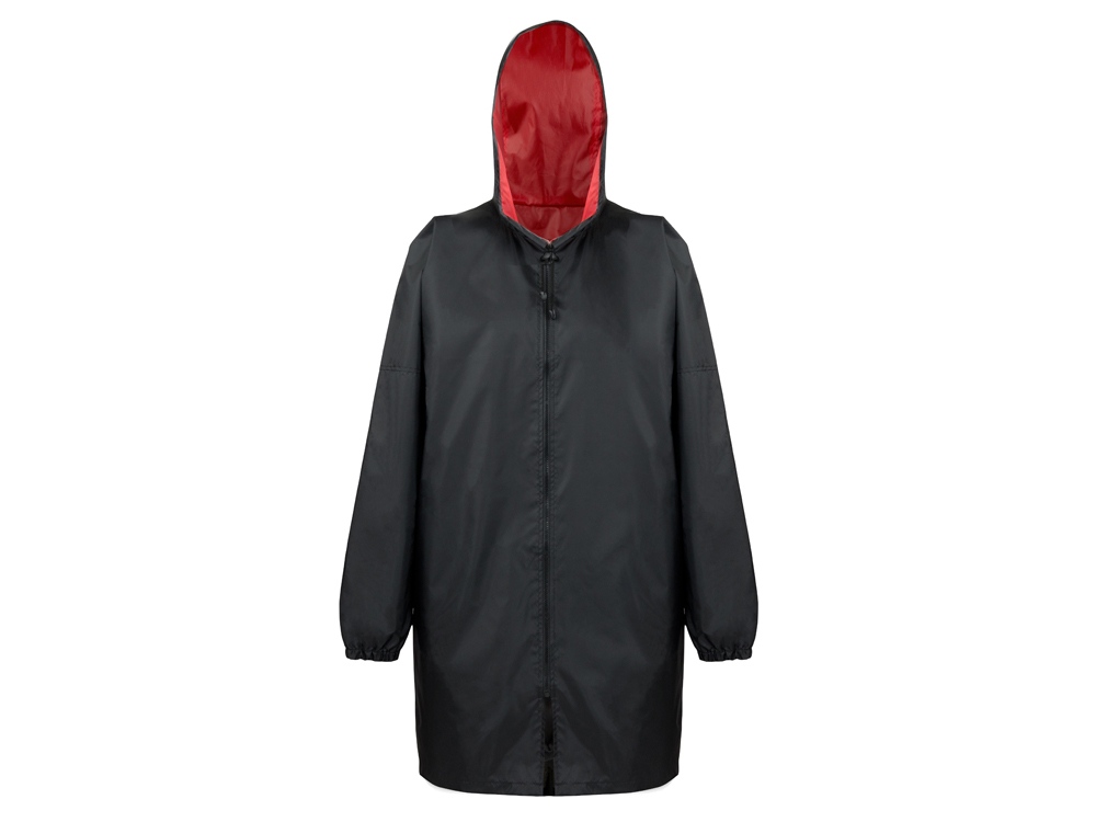 Стильный и практичный дождевик, созданный для активного образа жизни и эффективного промо. Его двусторонний дизайн сочетает простоту и яркость: черная сторона — для повседневной сдержанности, цветная — для привлечения внимания. Изготовлен из легкого, но плотного водоотталкивающего материала, который не теряет форму в непогоду. - Двустороннее ношение — мгновенно меняйте образ, подстраиваясь под настроение или событие. - Полная защита от непогоды: молния, регулируемый капюшон с кулисой, эластичные манжеты на рукавах. - Универсальный дизайн унисекс – подходит как мужчинам так и женщинам