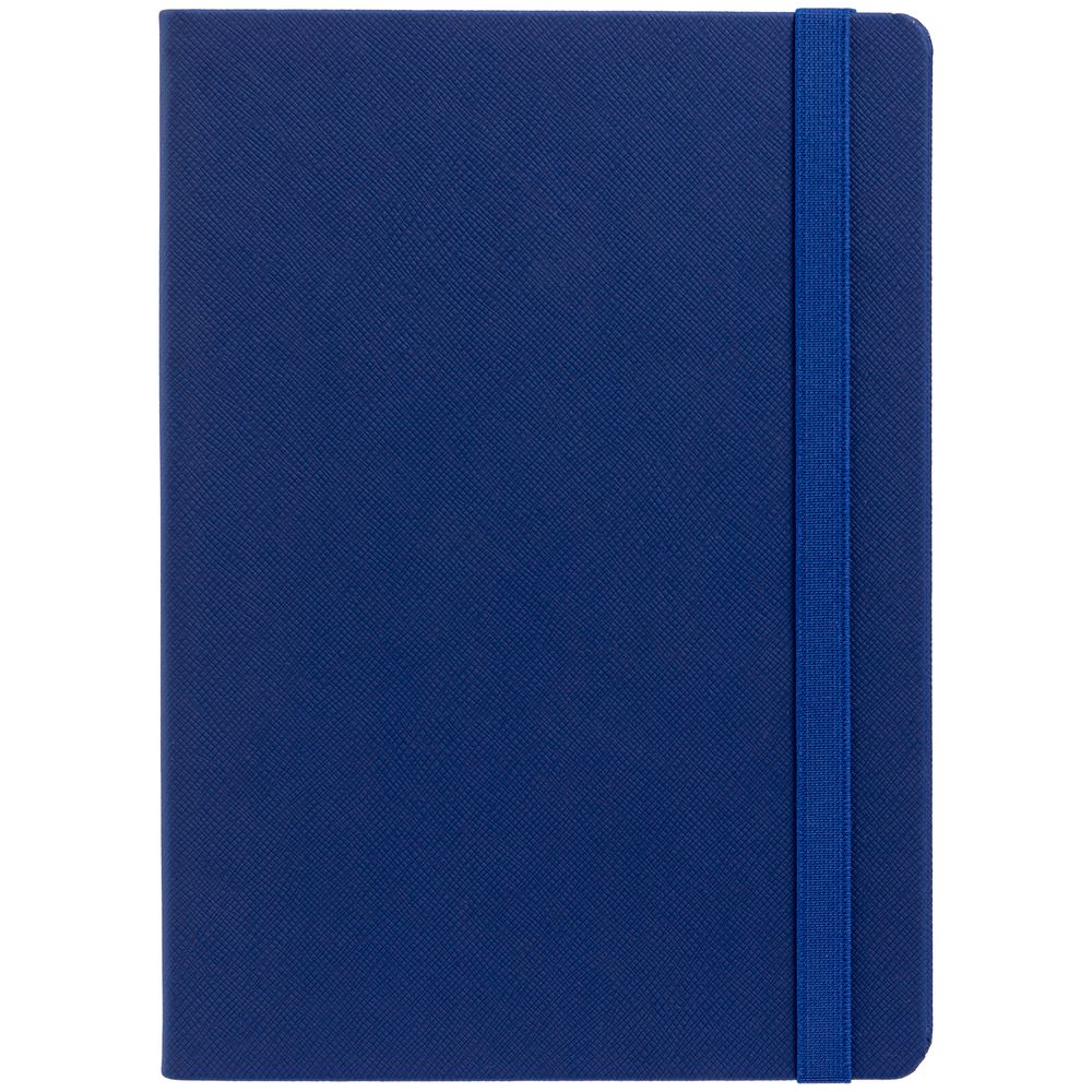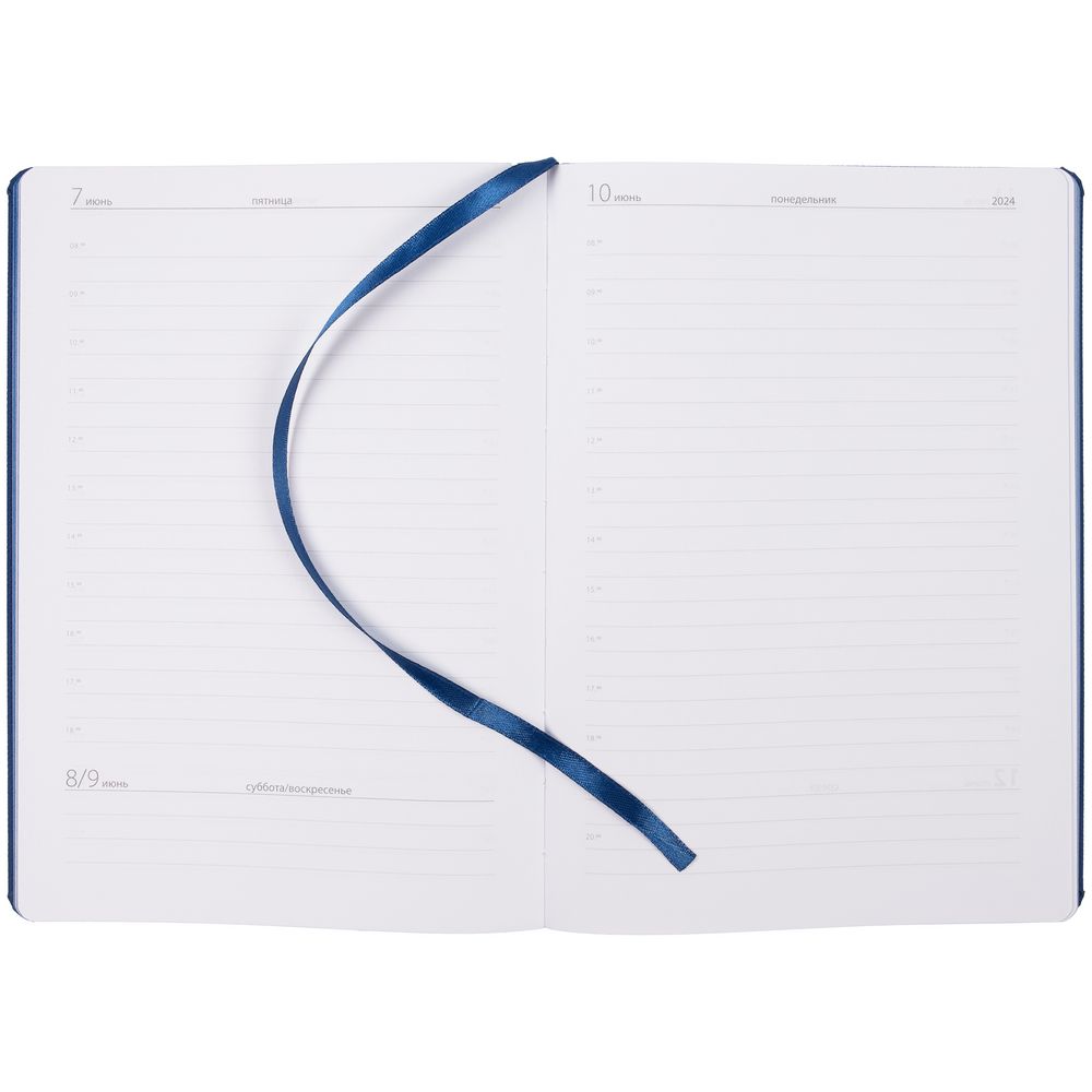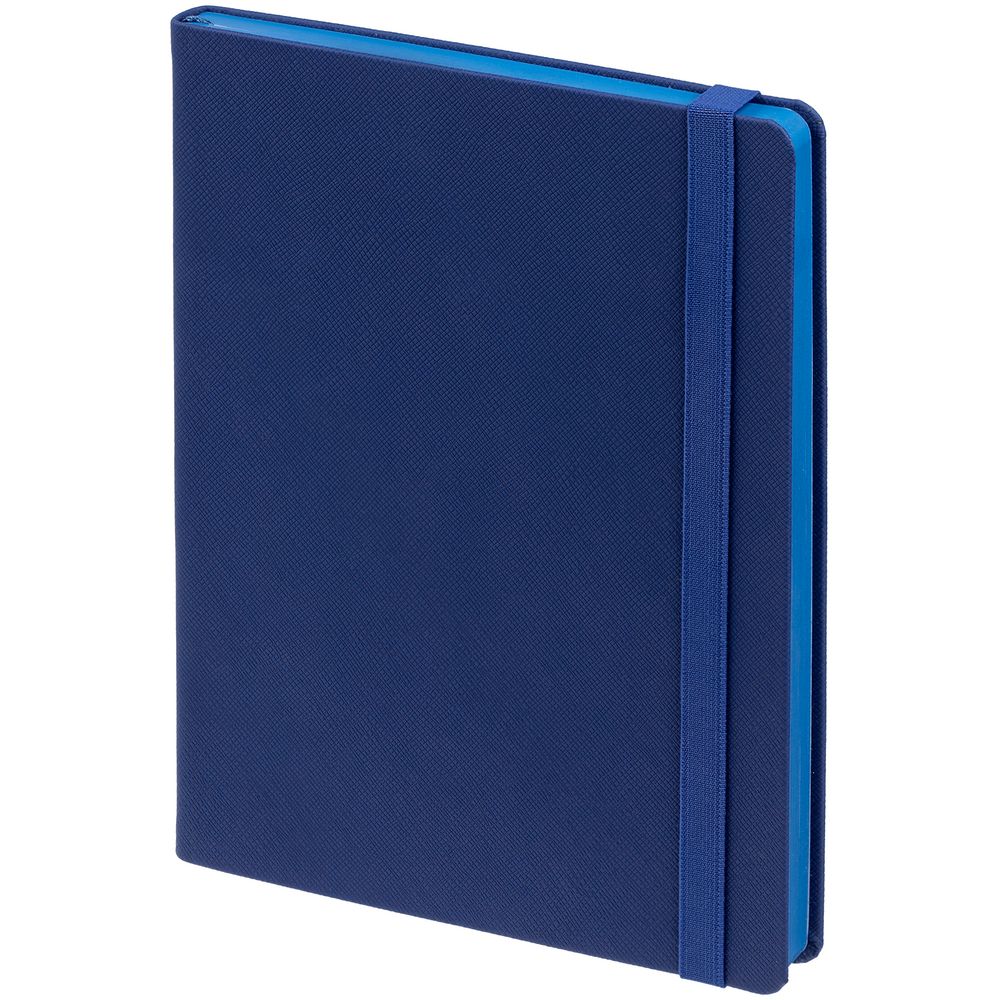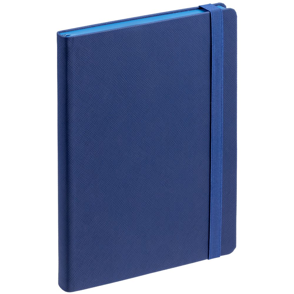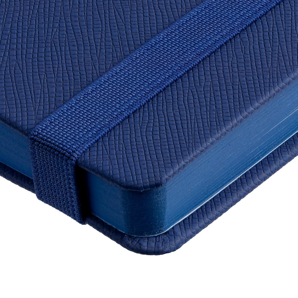 Ежедневник с полутвердой обложкой выполнен из материала Nice Touch, синий НН, и дополнен резинкой шириной 1 см и ляссе синего цвета.