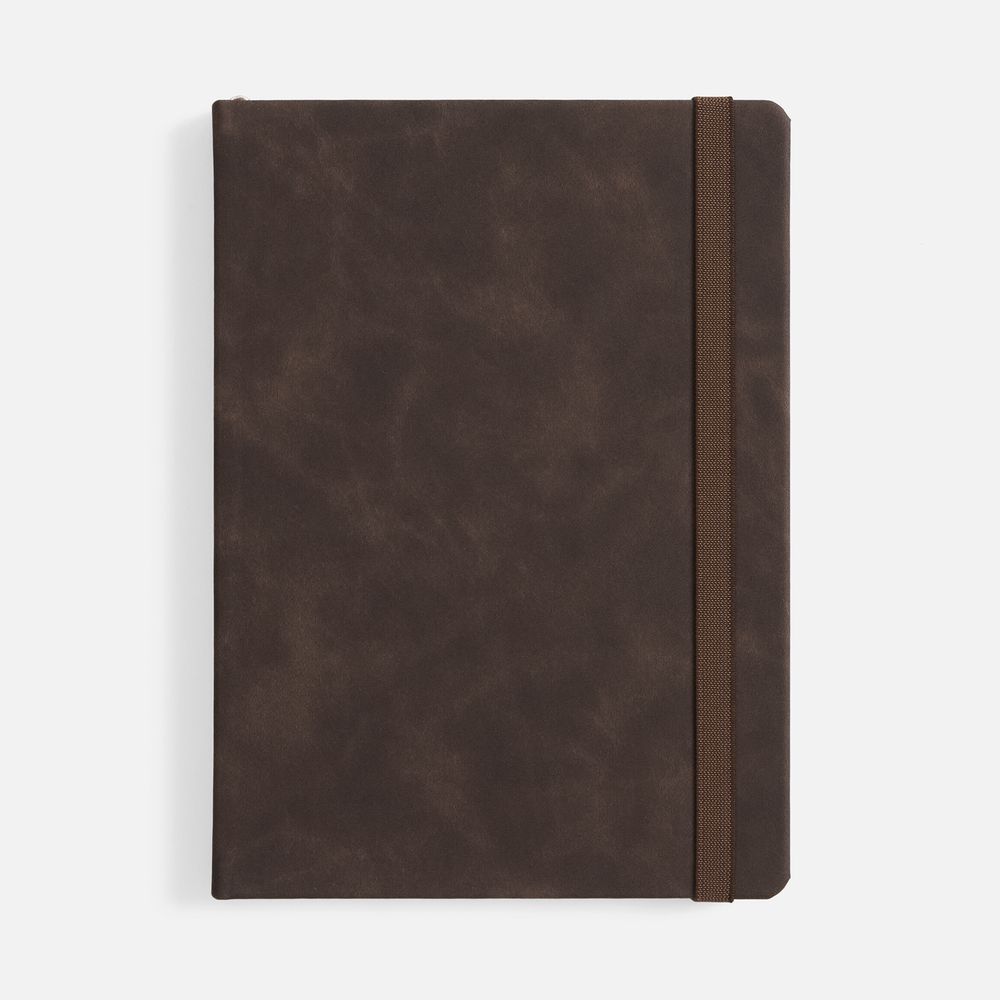 Ежедневник с твердой обложкой, выполнен из материала Nubuck Touch, темно-коричневый ZZ, дополнен ляссе темно-коричневого цвета.