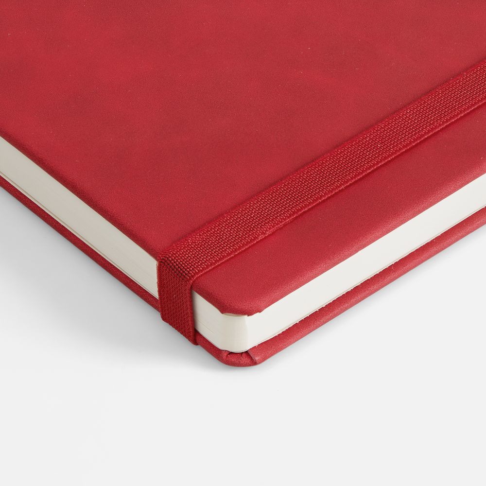 Ежедневник с твердой обложкой, выполнен из материала Nubuck Touch, красный PP, дополнен ляссе в цвет обложки.