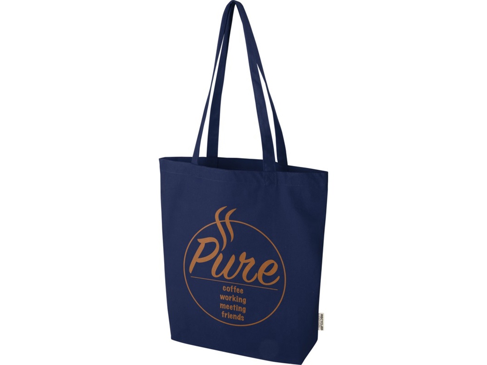 Эко-сумка Florida с широким дном, изготовленная из 100% переработанного хлопка, сертифицированного согласно GRS, плотностью 270 г/м², станет более ответственным и долговечным выбором для ваших повседневных нужд. Благодаря широкому дну в нем предусмотрено дополнительное место для самых необходимых вещей на любой случай — от похода по магазинам до повседневной прогулки. Длина ручки: 30 см. Объем: 10 литр. Хлопок.