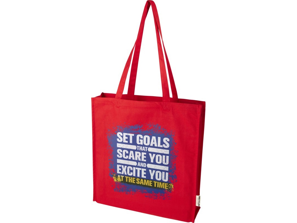 Эко-сумка Florida с о вставкой из 100% переработанного хлопка, сертифицированного согласно GRS, плотностью 270 г/м², станет более ответственным и долговечным выбором для ваших повседневных нужд. Благодаря вместимости до 14 литров и ручкам длиной 30 см он идеально подходит для удобной переноски продуктов, книг или повседневных вещей. Хлопок.