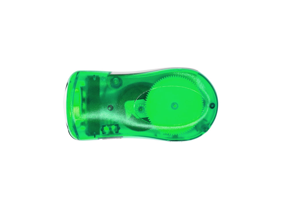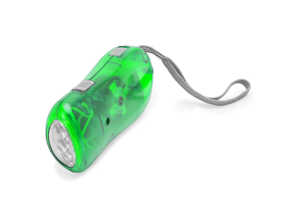 Фонарик с 3 светодиодами и динамо-зарядкой. Доступен в различных полупрозрачных цветах, с серым ремешком для переноски