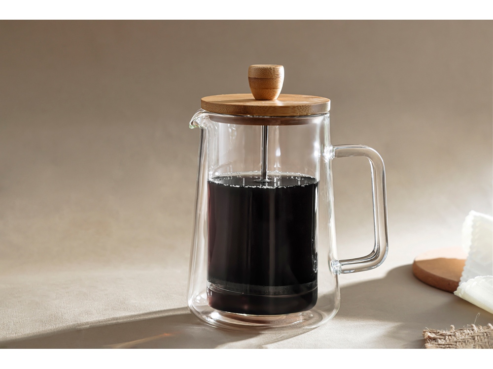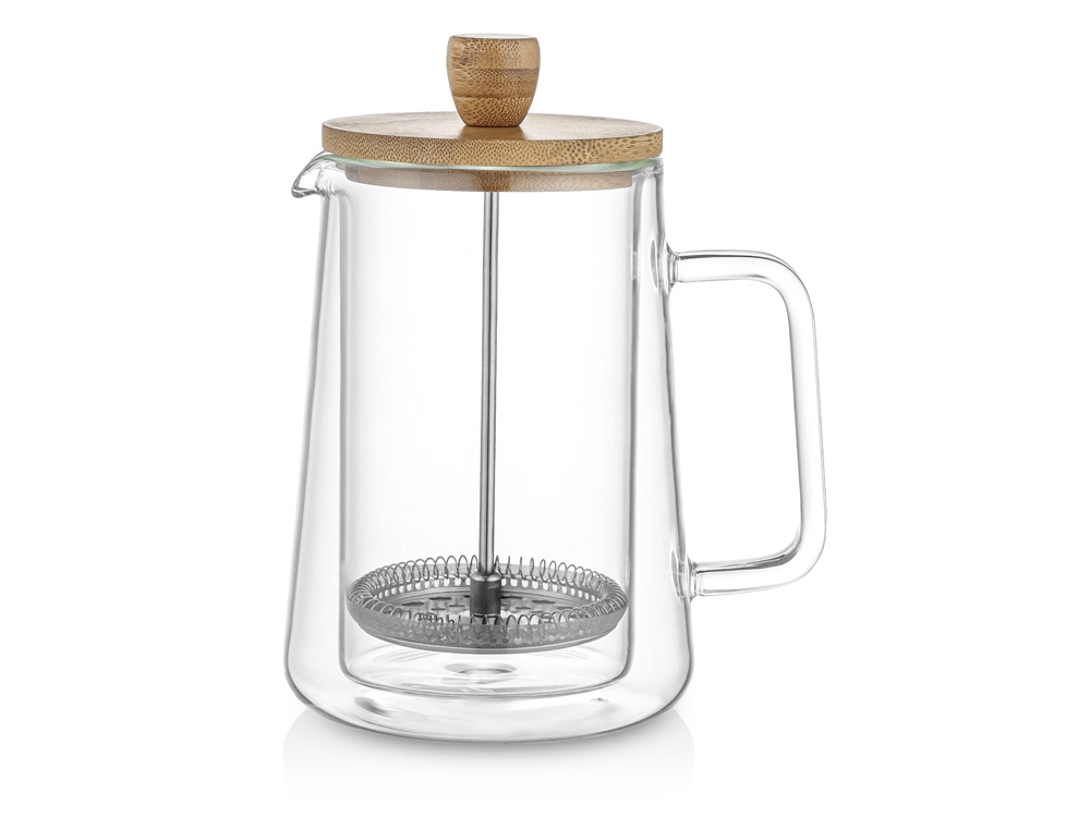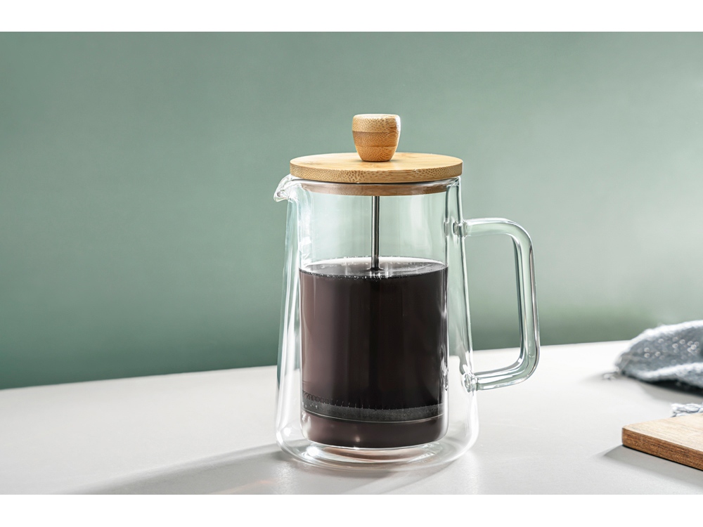 Стильный и функциональный френч-пресс Columbia объемом 600 мл создан для истинных ценителей кофе и чая. Благодаря современному дизайну и высококачественным материалам он станет незаменимым аксессуаром на вашей кухне или в офисе. Преимущества: - Двойные стенки из боросиликатного стекла – сохраняют температуру напитка дольше, предотвращают обжигание рук и придают изысканный вид. - Бамбуковая крышка – натуральный, экологичный материал с красивой текстурой, который гармонично дополняет стиль френч-пресса. - Объем 600 мл – идеальный размер для приготовления нескольких порций кофе или чая. - Простота ухода – легко разбирается и очищается, материалы устойчивы к перепадам температур. Френч-пресс с двойными стенками не только удобно использовать, но и приятно держать в руках. Он станет стильным элементом вашей кухни и подарит незабываемый вкус свежезаваренного напитка каждый день! Не рекомендуется использовать в посудомоечной машине и микроволновой печи.