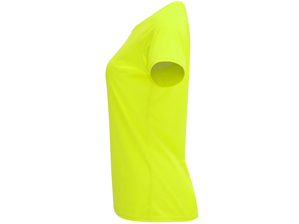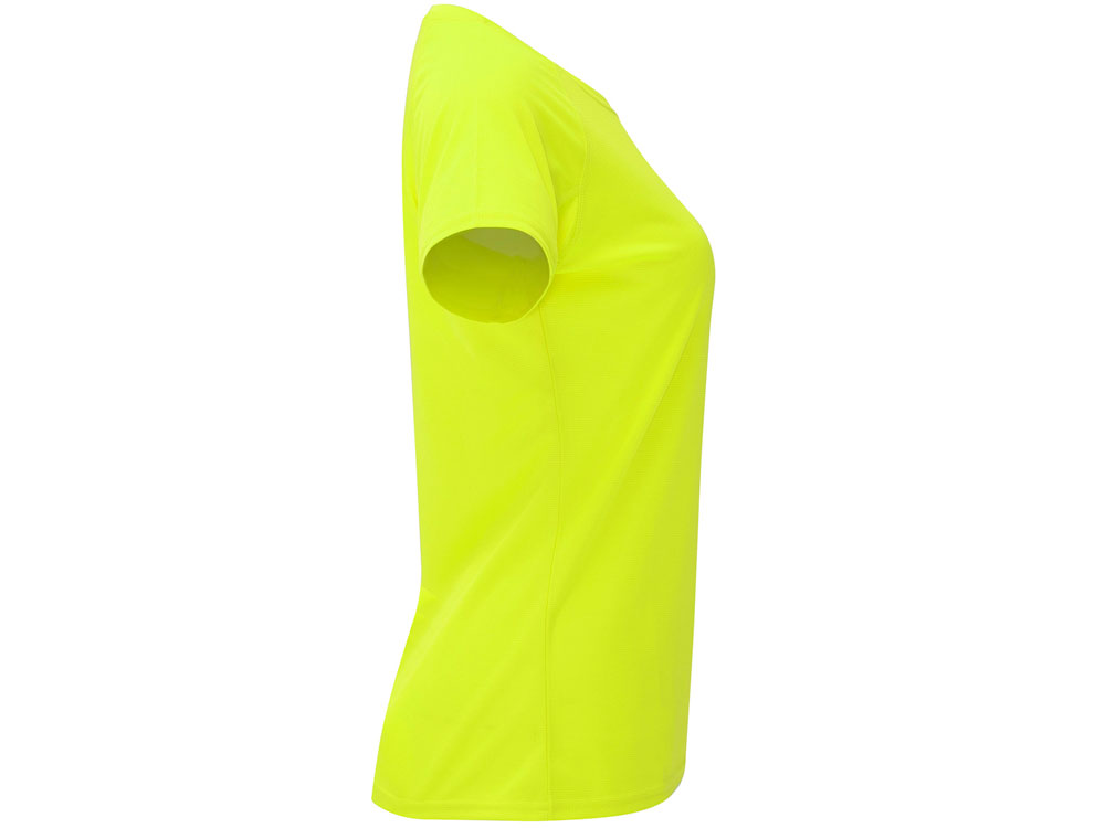 Спортивная футболка с коротким рукавом реглан для женщин. Круглый вырез горловины с отделкой плоским швом. Рукав сложного кроя для обеспечения дополнительного удобства при занятиях спортом. Отделка плоским швом с застилом по пройме и рукавам. Технологичное полотно с функцией DRY CONTROL и защитой от UV излучения