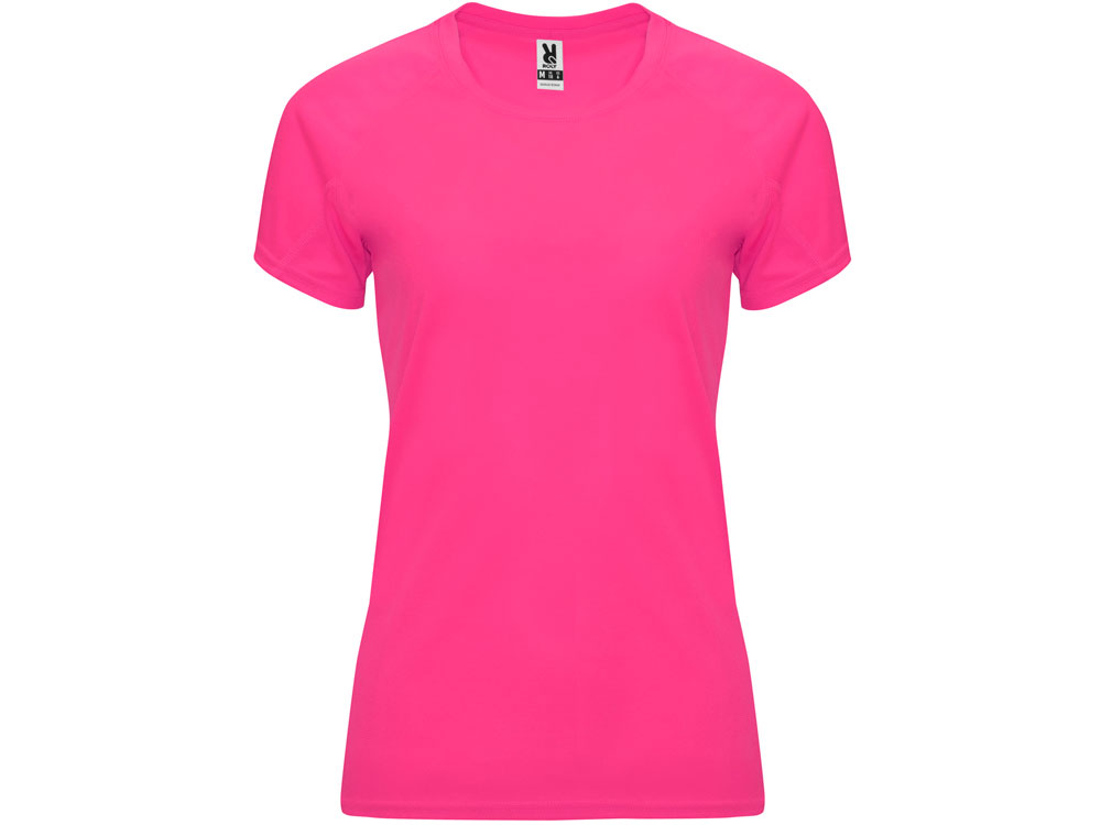 Спортивная футболка с коротким рукавом реглан для женщин. Круглый вырез горловины с отделкой плоским швом. Рукав сложного кроя для обеспечения дополнительного удобства при занятиях спортом. Отделка плоским швом с застилом по пройме и рукавам. Технологичное полотно с функцией DRY CONTROL и защитой от UV излучения