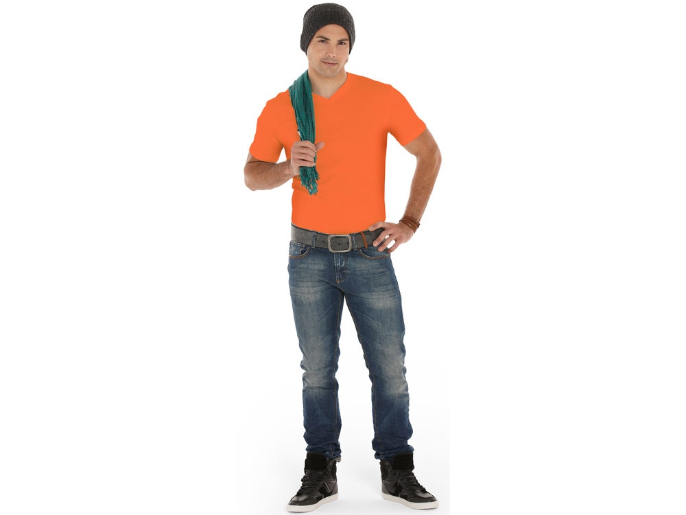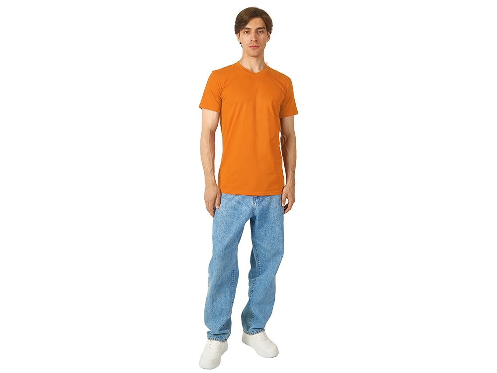 Футболка Heavy Super Club мужская с V-образным вырезом, оранжевый купить оптом и в розницу с нанесением логотипа в Челябинске