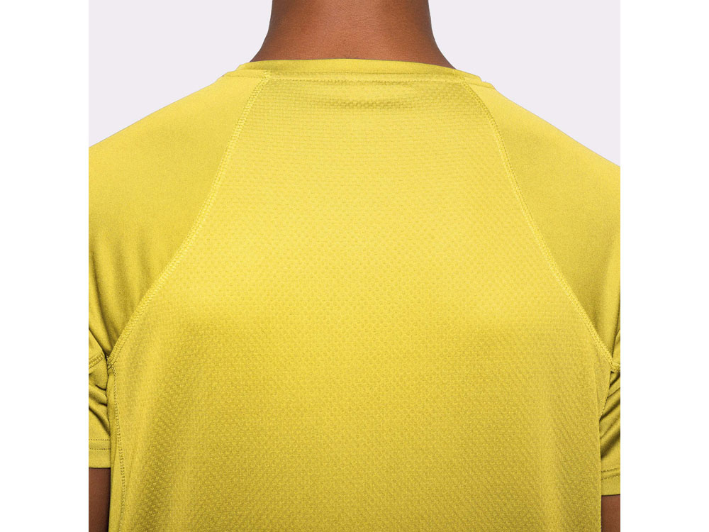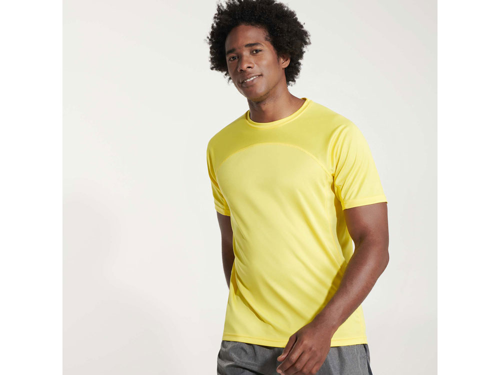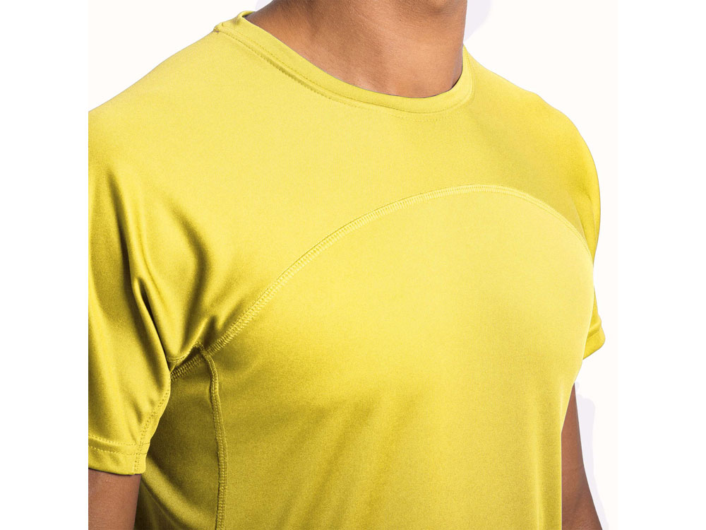 Спортивная футболка унисекс из технологичного полотна. Круглый вырез горловины укреплен со стороны спинки контрастной тесьмой. Спинка со вставкой из 3D сетки. Легко сохнущая дышащая модель