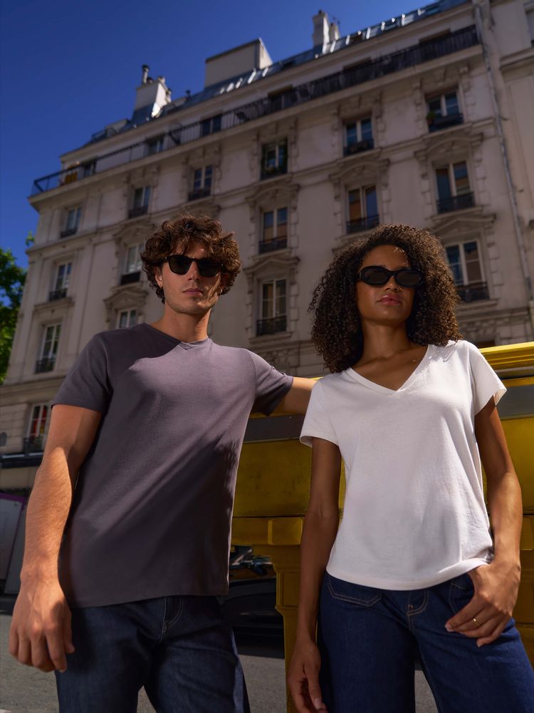 Женская футболка Regent с V-образным вырезом. Такой вырез снова актуален: он визуально удлиняет шею, подчеркивает линию ключиц и добавляет образу легкости.