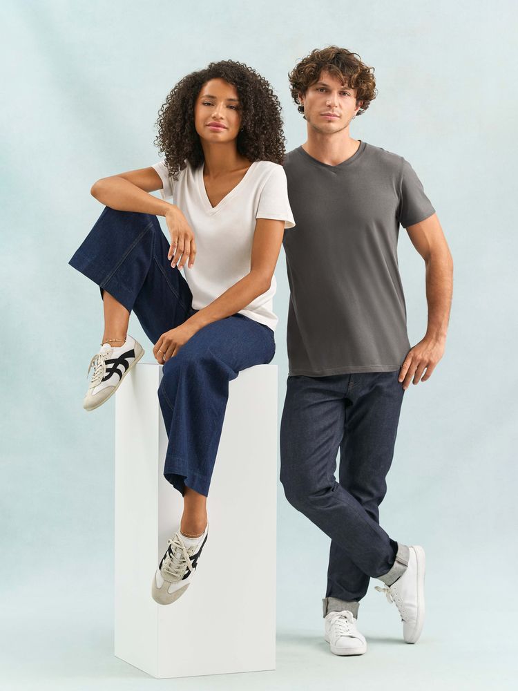 Женская футболка Regent с V-образным вырезом. Такой вырез снова актуален: он визуально удлиняет шею, подчеркивает линию ключиц и добавляет образу легкости.