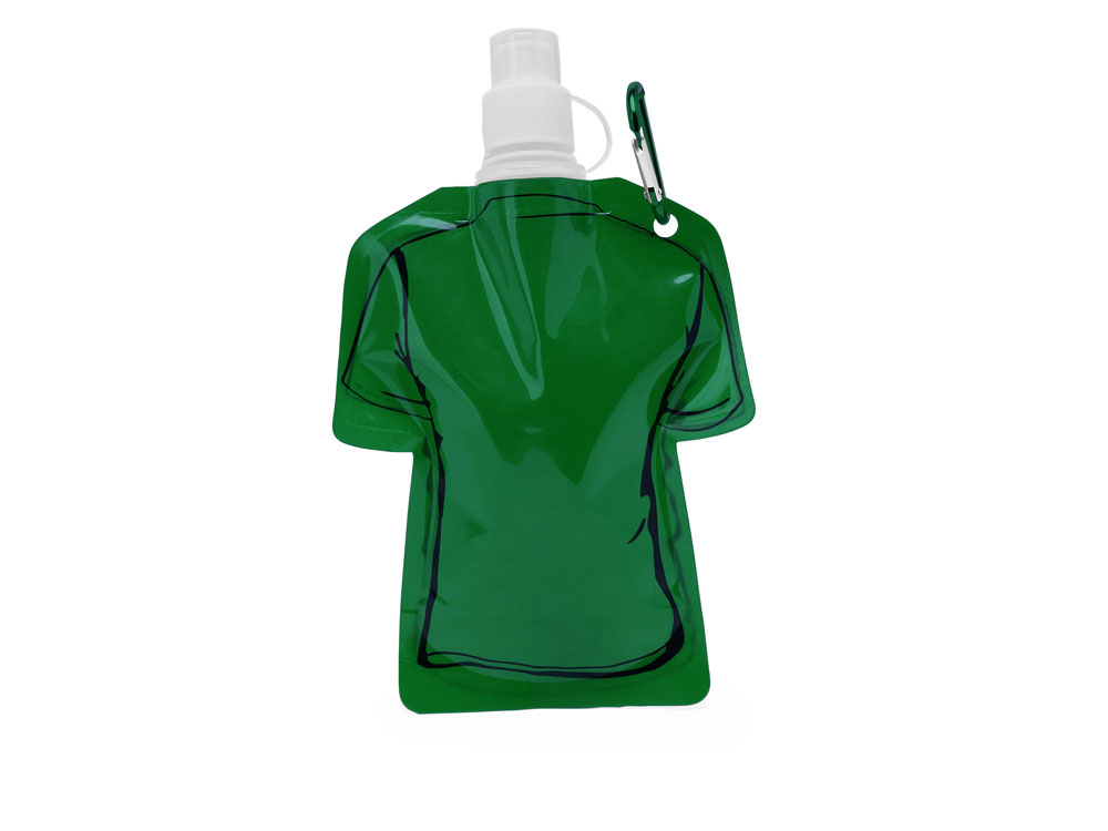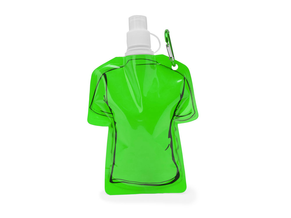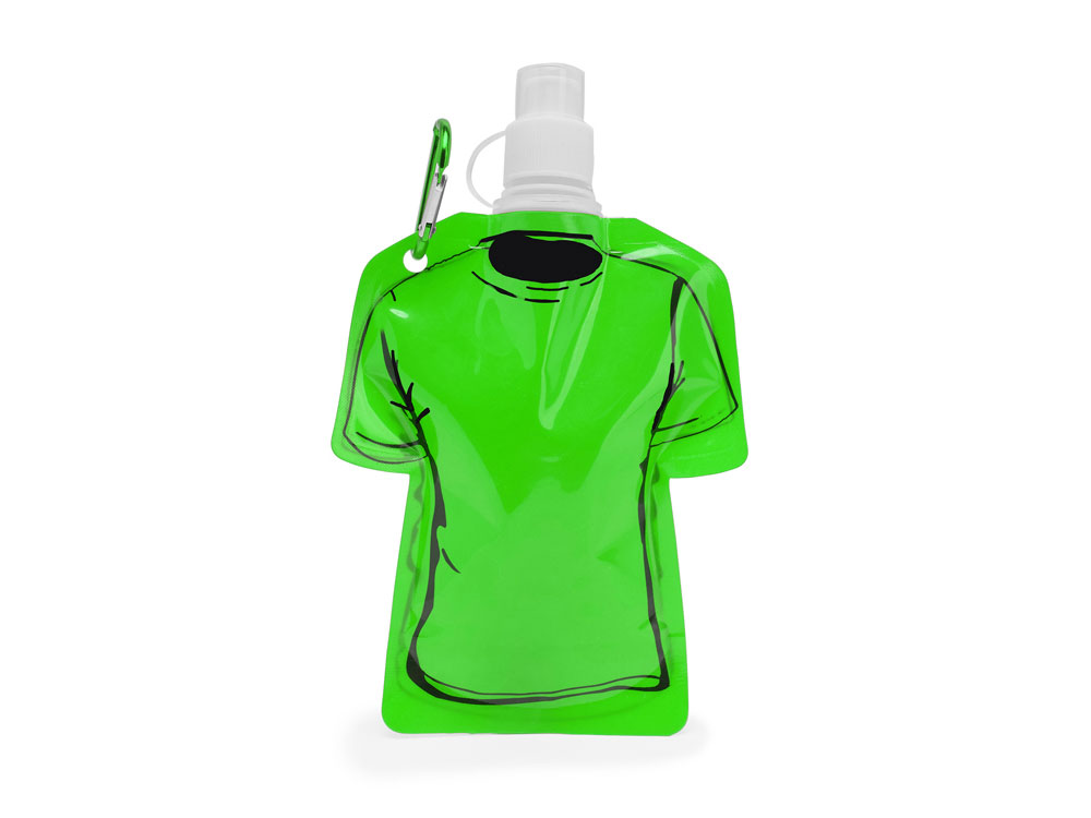 Гибкая емкость для питья в форме футболки, с защитным колпачком и карабином для удобства транспортировки. Объем 470 мл.
