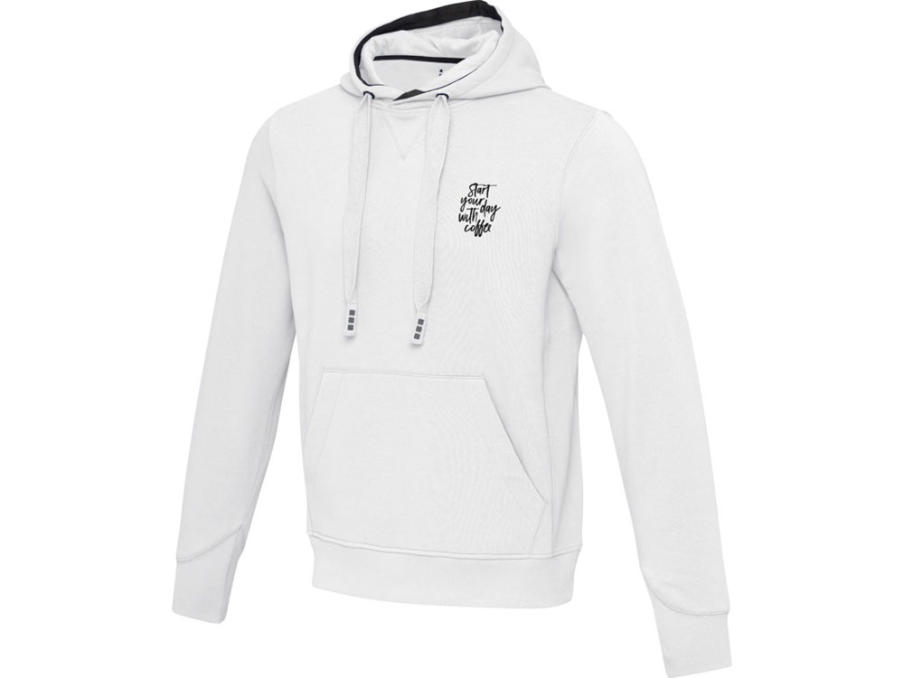 Боковые панели из гладкого трикотажа в рубчик. С V-образной вставкой из гладкого трикотажа в рубчик в центральной части. Манжеты из гладкого трикотажа в рубчик с V-образной формой. С подшивкой из гладкого трикотажа в рубчик. Капюшон на кулиске. Карман кенгуру. в форме полумесяца. Подкладка для капюшона из тонкого гладкого трикотажа. Выгравированные старинные серебряные люверсы. Атласная лента на шее. Лента контрастного цвета с рисунком елочка. Ворсованная внутренняя часть для ощущения мягкости, тепла и комфорта.