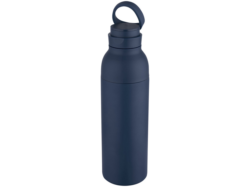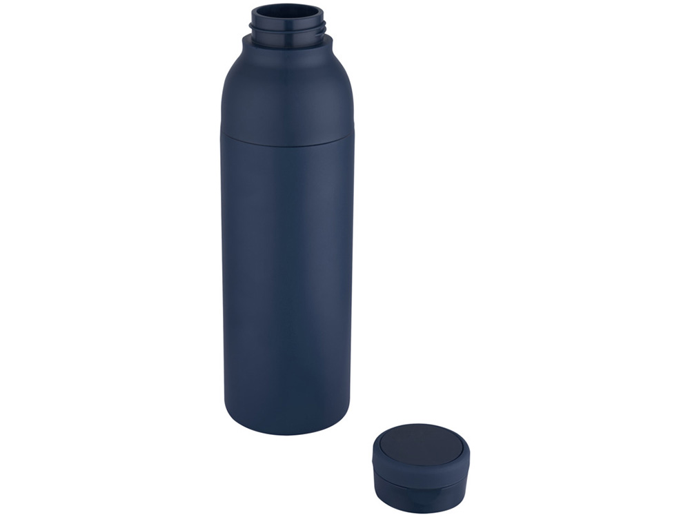 Бутылка для воды с двойными стенками, вакуумной изоляцией, из нержавеющей стали сертифицированной согласно RCS, с незаметной встроенной в крышку силиконовой ручкой. Двухкомпонентная конструкция облегчает простую очистку, а прочное порошковое покрытие и медное покрытие гарантируют долговечность. Поставляется в подарочной коробке из переработанного картона. Объем: 650 мл. 80% Нержавеющая сталь из переработки, сертифицированная RCS, 10% Пластик PP, 10% Силиконовый Пластик. упаковка FSC Mix Credit P5.1 CU-COC-877277.