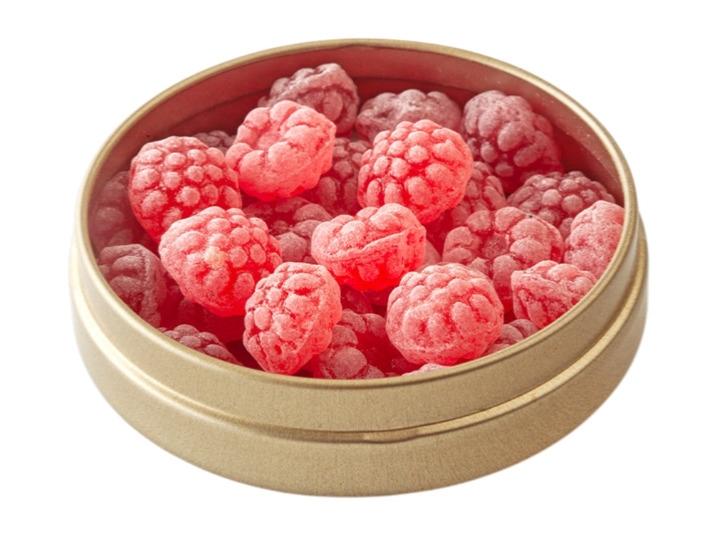 Натуральная и необычная карамель в форме ягодки малины имеет яркий и сочный вкус. Данные леденцы имеют превосходное качество и каждый раз напоминают прекрасный вкус лета. Баночка весьма компактна, что позволяет поместить её в любой карман. Разработана по немецкой технологии. Состав: патока, вода, регуляторы кислотности (лимонная кислота, молочная кислота), ароматизаторы идентичные натуральным, краситель: концентрат сладкого картофеля, редиса и яблока, сахар.