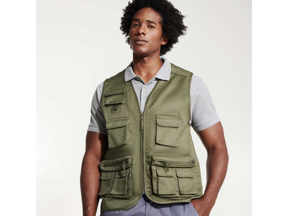 Рабочий жилет 1 застежка на молнию 2 V-образный вырез горловины 3 3 нагрудный кармана с клапаном и застежкой на липучку 4 верхний карман с многофункциональным кольцом 5 два боковых кармана на молнии в рамку с двумя кармана с клапаном и застежкой на липучку 6 два задних кармана с клапаном 7 горловина, пройма и низ обработаны кантом