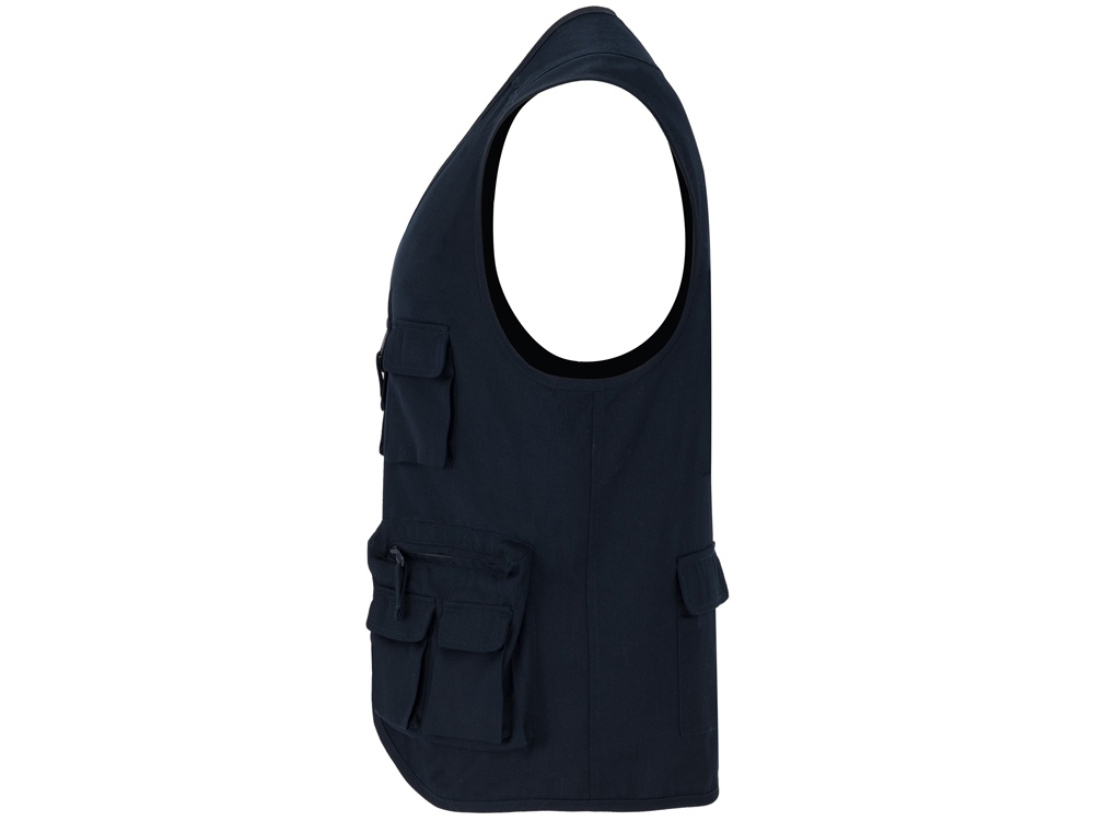 Рабочий жилет 1 застежка на молнию 2 V-образный вырез горловины 3 3 нагрудный кармана с клапаном и застежкой на липучку 4 верхний карман с многофункциональным кольцом 5 два боковых кармана на молнии в рамку с двумя кармана с клапаном и застежкой на липучку 6 два задних кармана с клапаном 7 горловина, пройма и низ обработаны кантом