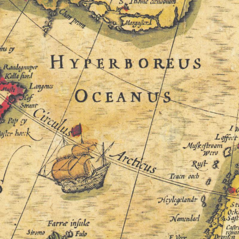• Ознакомление с представленной картой приводит в восторг исследователей со всего мира. Гиперборейский океан, обозначенный на карте, отделяет Европу от Арктики, где находится место обитания блаженного народа, живущего в легендарной "северной" стране Гиперборея.
