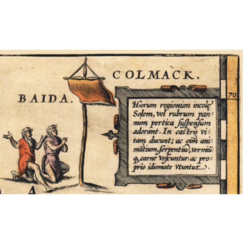 • Необыкновенный интерес вызывают тексты с пояснениями к различным местам и областям необъятной Тартарии: текст о Золотой Бабе, красное знамя и рисунок, поклоняющихся ему людей. Весьма интересны и другие пояснительные тексты.
