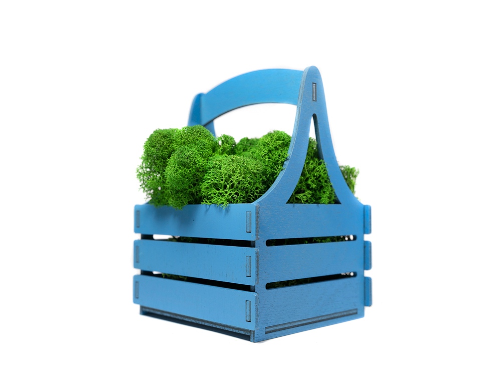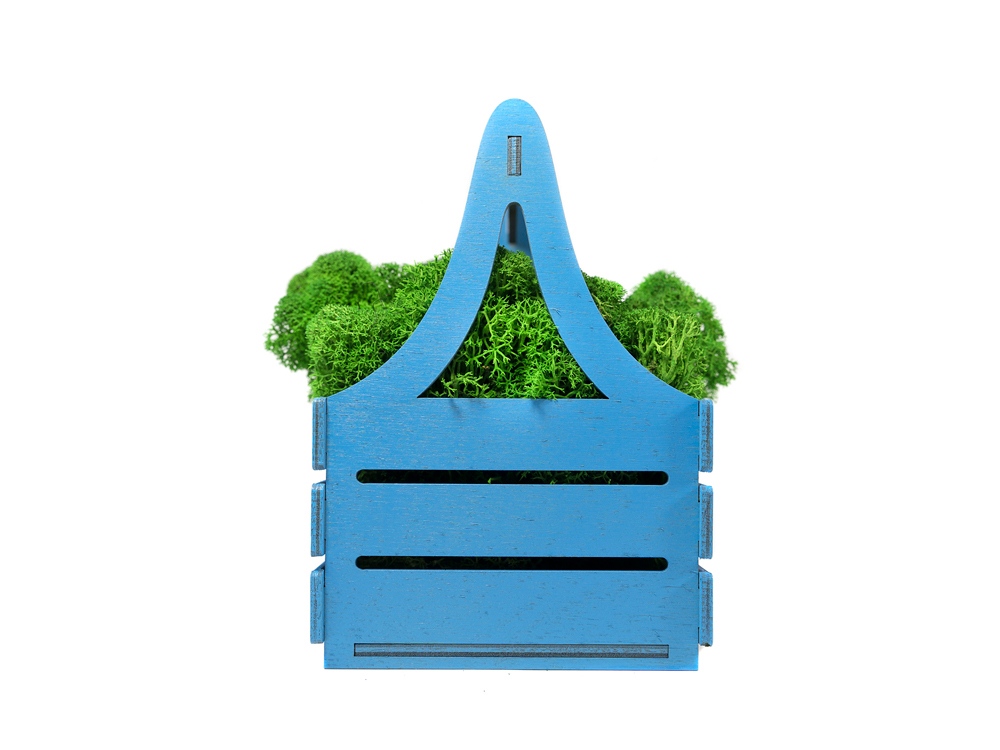 Корзинка со мхом станет прекрасным украшением вашего интерьера. - Композиция изготовлена из дерева и собирается вручную - Стабилизированный мох ягель - экологический природный материал: он не нуждается в поливе, не требует освещения, не собирает пыль, сохраняет привлекательный внешний вид в течение 7 лет, гипоаллергенный - Мох не болеет и в нем не заводятся насекомые - Для окраски мха используются пищевые красители, в связи с чем композиция может окрашивать руки - Изделие предназначено для декорации жилых и офисных помещений. Можно устанавливать в местах с отсутствием естественного освещения (ванны, туалетные комнаты и т.п.). Нельзя оставлять композицию под прямыми солнечными лучами, не поливать.