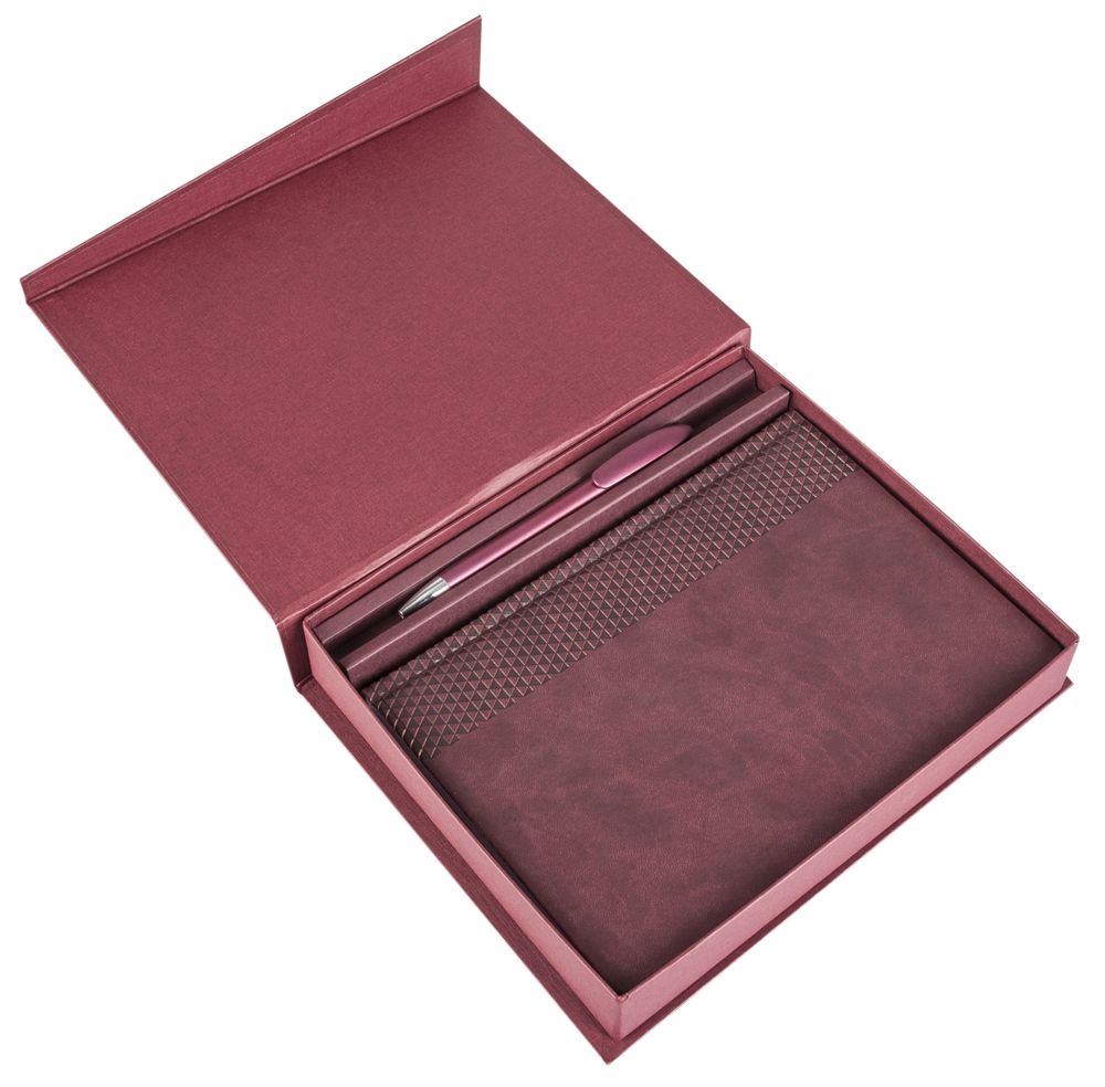Коробка Duo под ежедневник и ручку, бордовая купить оптом и в розницу с нанесением логотипа в Челябинске