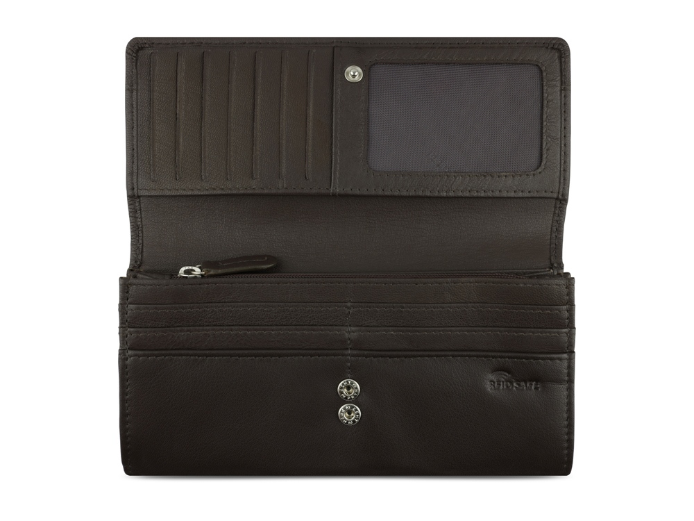 ЖЕНСКИЙ КОШЕЛЁК BANDA С ЗАЩИТОЙ ДАННЫХ RFID Просто, но не скучно! Серия мужских портмоне и женских кошельков BANDA выделяется лаконичной элегантностью. Сочетание классических цветов и контрастных деталей придает коллекции современный стиль. Каждое изделие имеет продуманную функциональную организацию внутреннего пространства и снабжено большим количеством карманов для карт, отсеками для хранения квитанций, а также отделениями для банкнот и монет. Все модели изготовлены из превосходной козьей кожи наппа. Особое внимание при создании коллекции уделено защите от радиочастотной идентификации RFID. Продукция оснащена специальным защитным слоем из фольги, который предотвращает незаконное сканирование вашей личной информации и препятствует списанию денежных средств с банковских карт. СВОЙСТВА Функциональная организация: 2 отделения для банкнот, 19 слотов для карт, 3 кармана, отделение для монет, отделение на молнии, сетчатый карман, защита данных RFID. Материал: кожа козы/полиэстер Размер: 18,5 x 2,5 x 9,5 см Вес: 0,13 кг