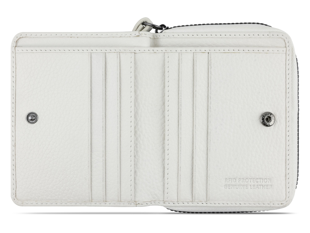 ЖЕНСКИЙ КОШЕЛЕК ELSA С ЗАЩИТОЙ ДАННЫХ RFID Готовы к поездке в выходные? Мы раскрасим вашу ленту в соцсетях невероятной коллекцией ELSA. Коллекция ELSA предлагает широкий ассортимент аксессуаров и сумок разных форм и размеров, от элегантных кошельков и изящных наплечных сумочек для выхода в свет до вместительных шопперов и дорожных сумок для путешествий. Все модели серии изготовлены из высококачественной мягкой воловьей кожи и представлены в классическом черном, белом и бежевом цветах. Элегантное тиснение логотипа Bugatti придает очарование каждой модели. Коллекция выделяется продуманной функциональной организацией внутреннего пространства и защитой от радиочастотной идентификации RFID. Кошельки и ключницы оснащены специальным защитным слоем из фольги, который предотвращает незаконное сканирование вашей личной информации и препятствует списанию денежных средств с банковских карт. Какой бы аксессуар или сумку вы бы ни предпочли, будьте уверены, что с коллекцией ELSA вы точно окажетесь в центре внимания. СВОЙСТВА Функциональная организация: основное отделение на молнии, 6 слотов для карт, 8 карманов, отделение для купюр, 2 отделения для монет, ремешок на запястье, защита данных RFID. Материал: воловья кожа/полиэстер Размер: 11 х 2,5 х 9 см Вес: 0,105 кг