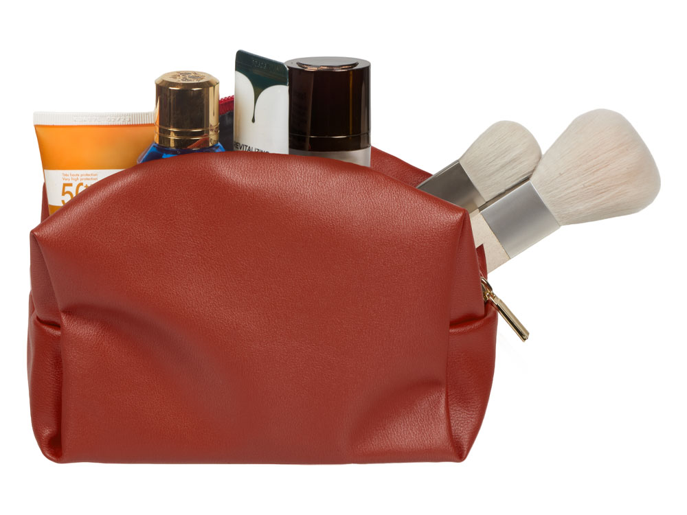 Косметичка из искусственной кожи удобной и вместительной формы. Внутри подклад серого цвета с карманом для маленьких предметов.