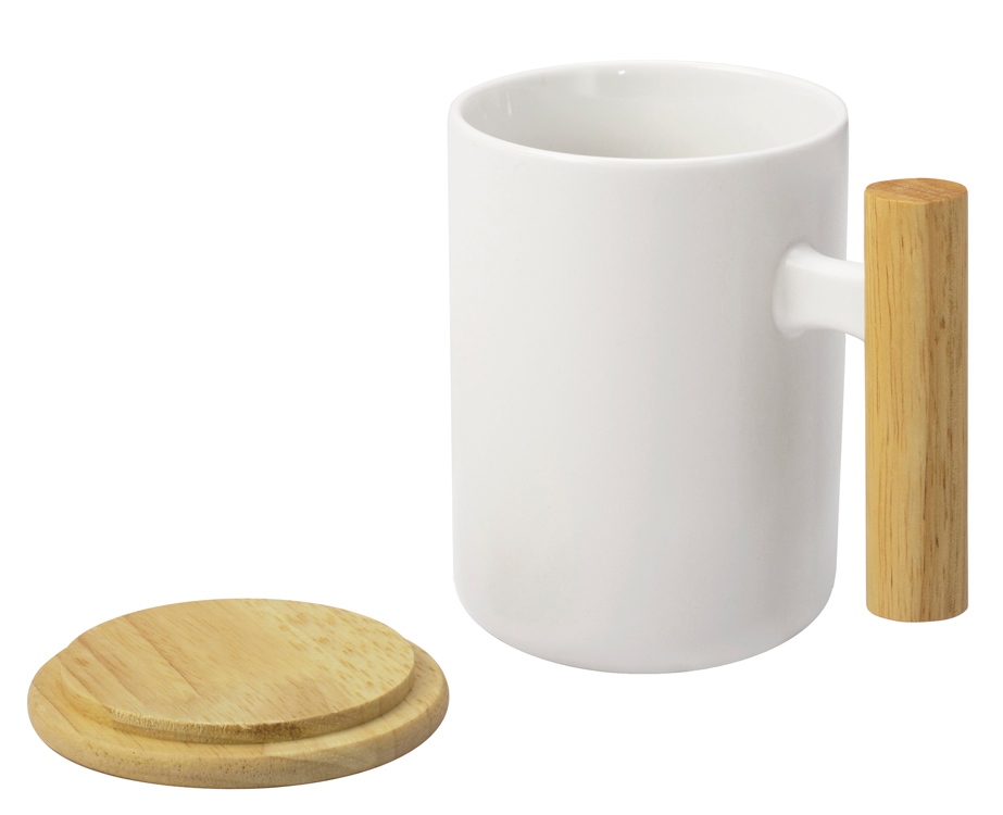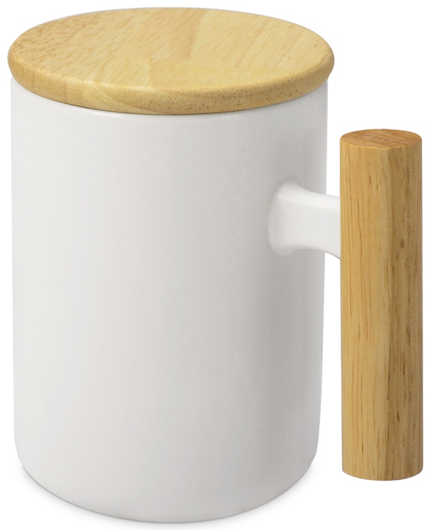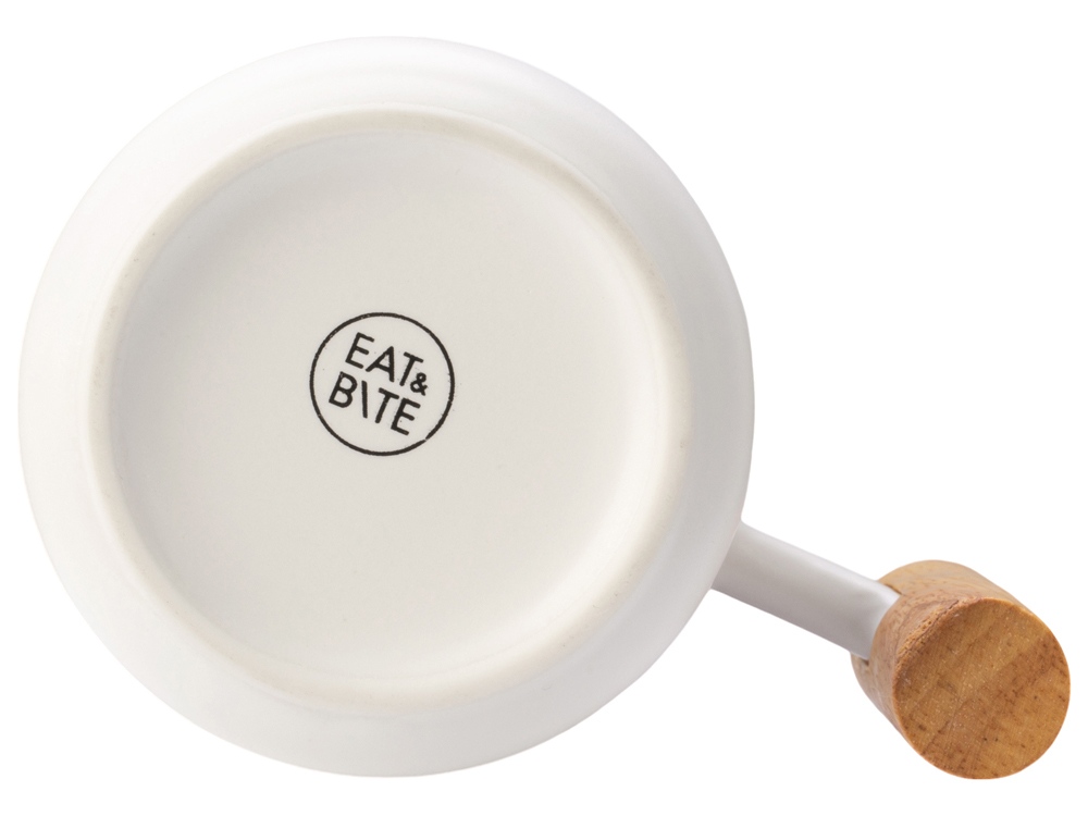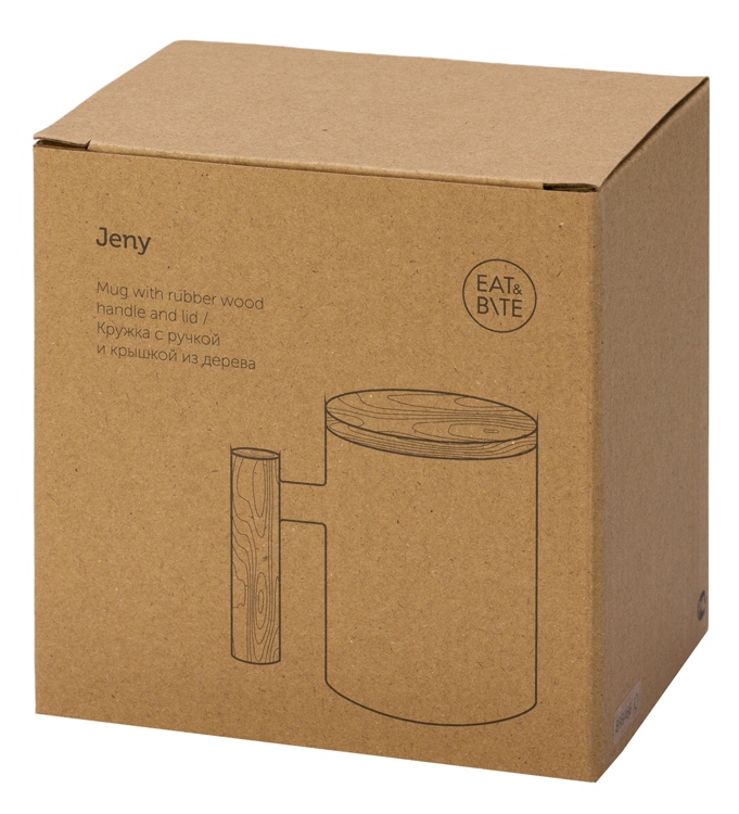 Лёгкая и практичная кружка от бренда Eat&Bite выполнена из костяного фарфора. Кружка имеет удобную ручку из тактильно приятного каучукового дерева. Jeny оснащена деревянной крышкой, которая поможет дольше сохранять температуру напитка. - объём: 350 мл; - стильный дизайн; - натуральные материалы; крышка подходит для брендирования. Натуральные материалы требуют аккуратного ухода, поэтому кружка подходит только для ручной мойки. Не использовать в микроволновой печи.