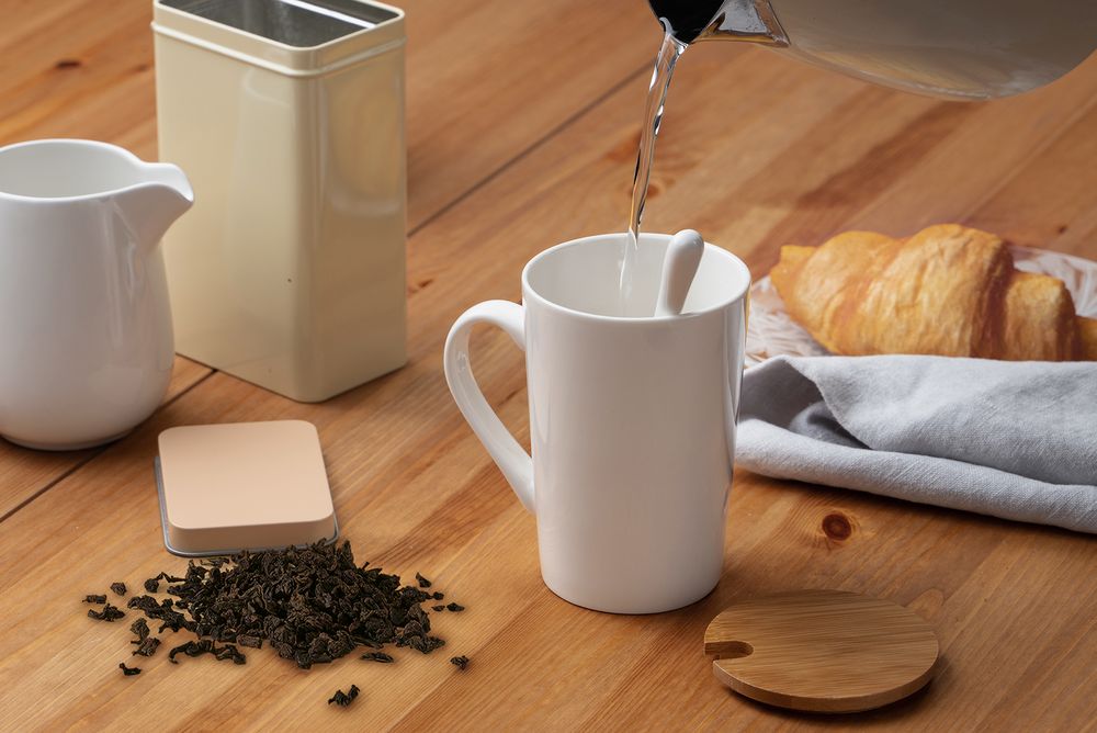 Кружка Parley с ложкой и бамбуковой крышкой купить оптом и в розницу с нанесением логотипа в Челябинске